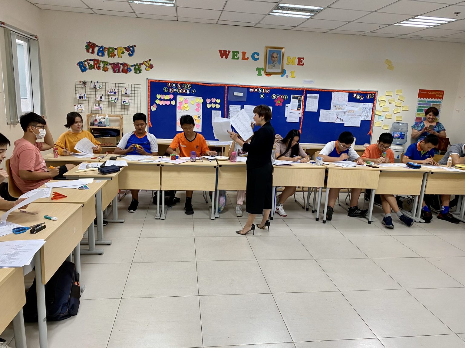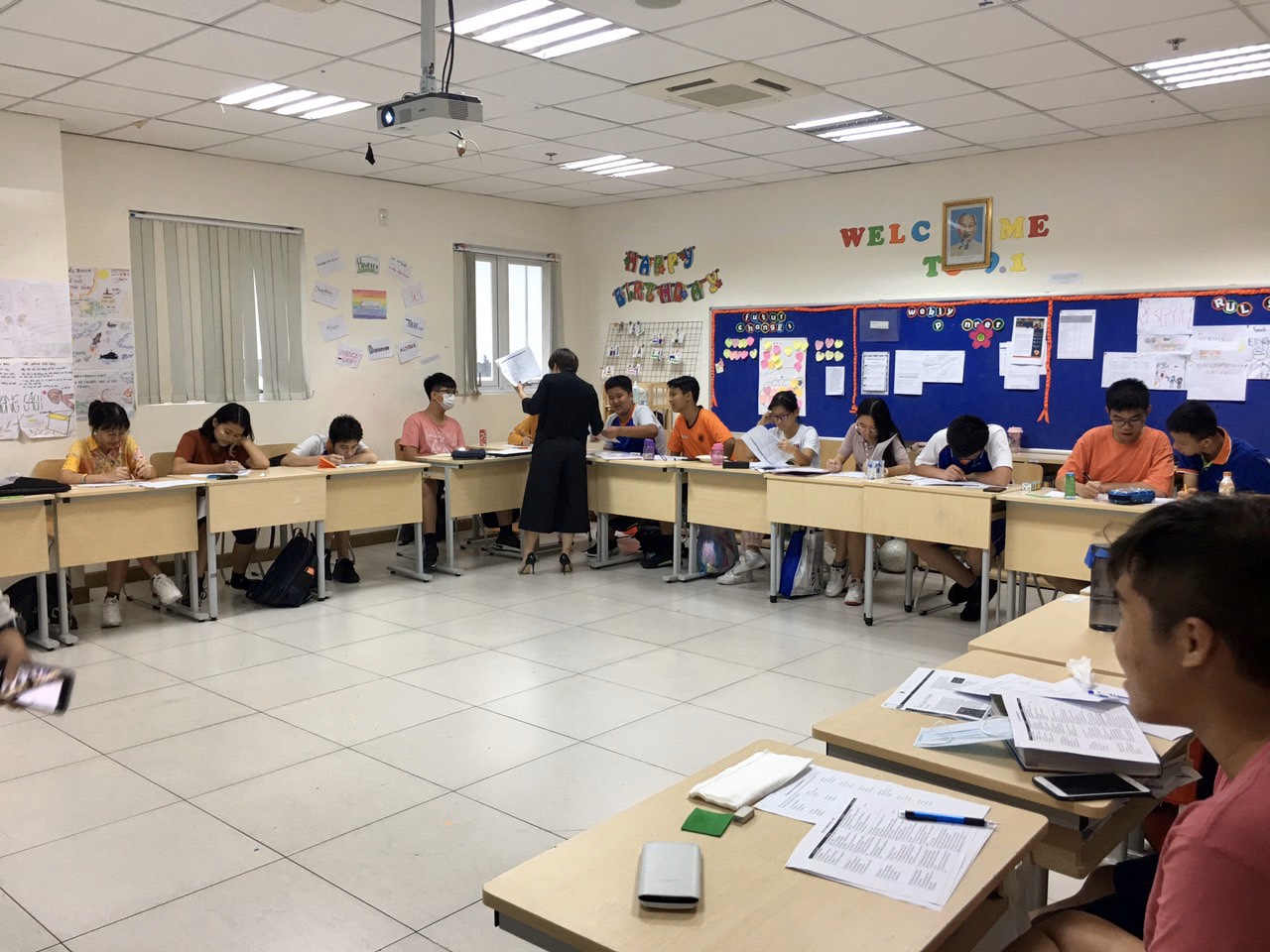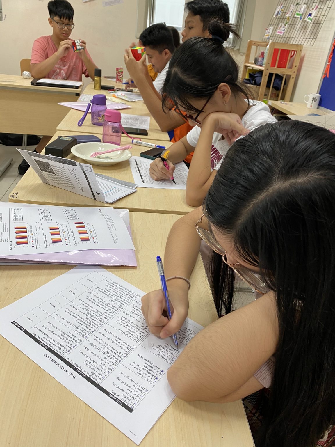 Có thể thấy các bạn học sinh cũng rất quan tâm đến định hướng nghề nghiệp của mình sau này, tất cả các em đều tham gia làm phần trắc nghiệm tính cách để chọn nghề với thái độ nghiêm túc