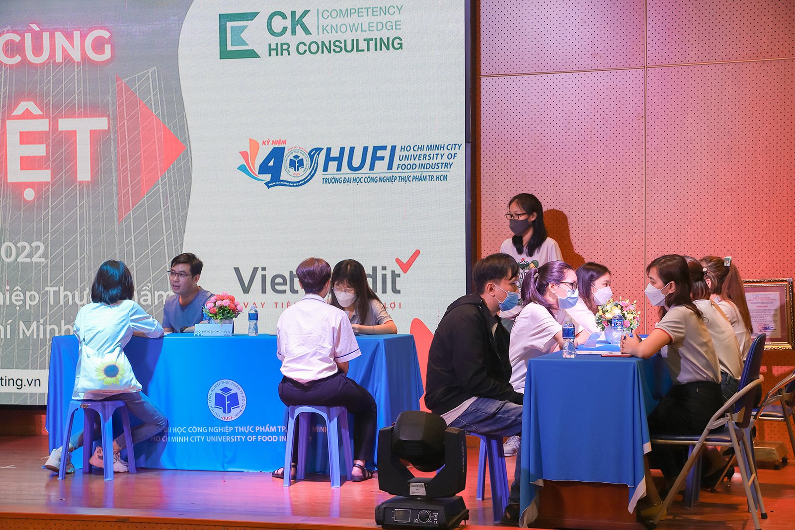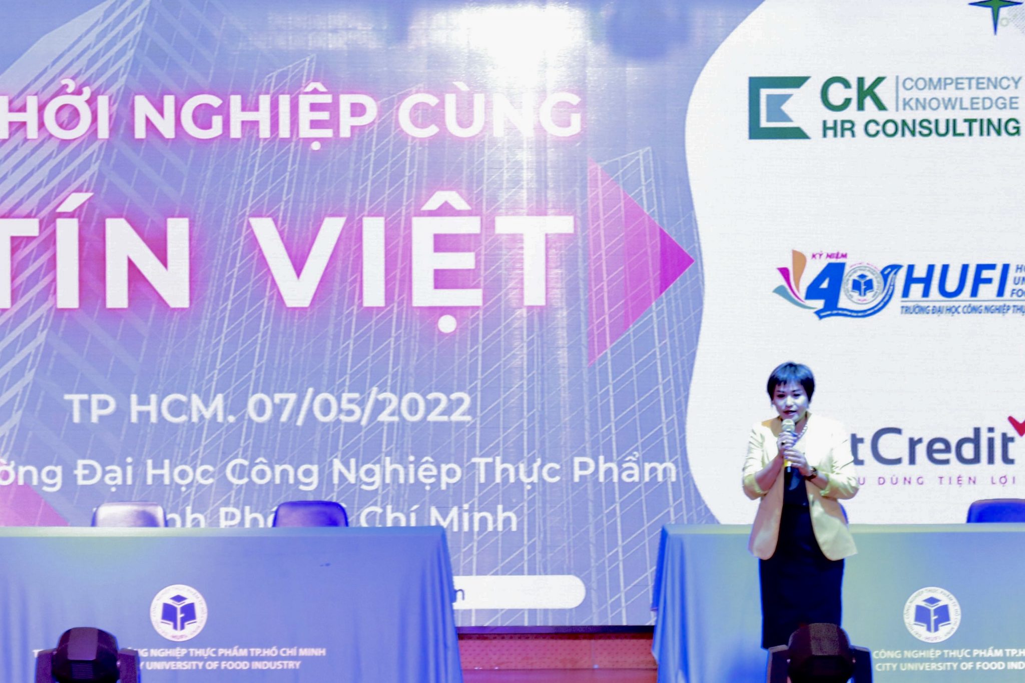 Mang đến cơ hội làm việc cho sinh viên, rút ngắn thời gian ứng tuyển, chiều 07/05/2022 tại Hội trường C – Đại học Công nghiệp thực phẩm TPHCM (HUFI), CK HR Consulting và HUFI đã đồng hành tổ chức ngày hội phỏng vấn “Khởi nghiệp cùng Tín Việt”.