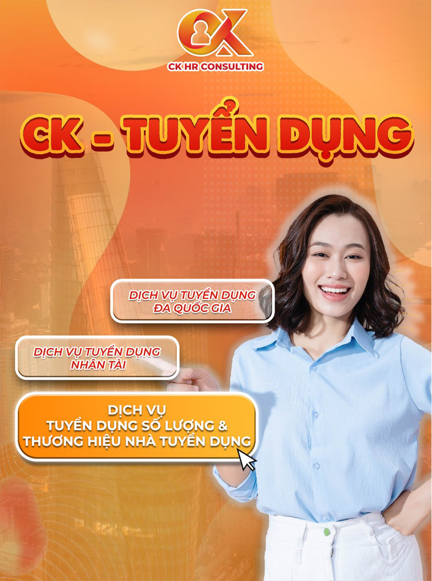 Đối với các vị trí chưa yêu cầu kinh nghiệm, hoặc yêu cầu kinh nghiệm dưới 3 năm hoặc mức lương của các vị trí tuyển dụng dưới 20 triệu đồng, CK HR Consulting cung cấp giải pháp tuyển dụng số lượng với nguồn ứng viên lớn, đa dạng, chất lượng cùng mạng lưới nhân sự cộng tác phủ khắp các tỉnh thành, đáp ứng nhu cầu về lực lượng lao động tại các doanh nghiệp. Ngoài ra, CK HR Consulting tự tin là một đơn vị đã tổ chức nhiều sự kiện nhân sự, cung cấp dịch vụ thương hiệu nhà tuyển dụng với chi phí tối ưu dựa trên các giá trị cốt lõi của doanh nghiệp, thông qua các giải pháp online (quảng bá trên các kênh mạng xã hội) & trực tiếp (tổ chức các sự kiện tuyển dụng, phỏng vấn tuyển dụng…) nhằm hỗ trợ khách hàng quảng bá thương hiệu tuyển dụng và thu hút sự quan tâm của đội ngũ lao động, từ đó cải thiện cả về chất và về lượng của nguồn tuyển