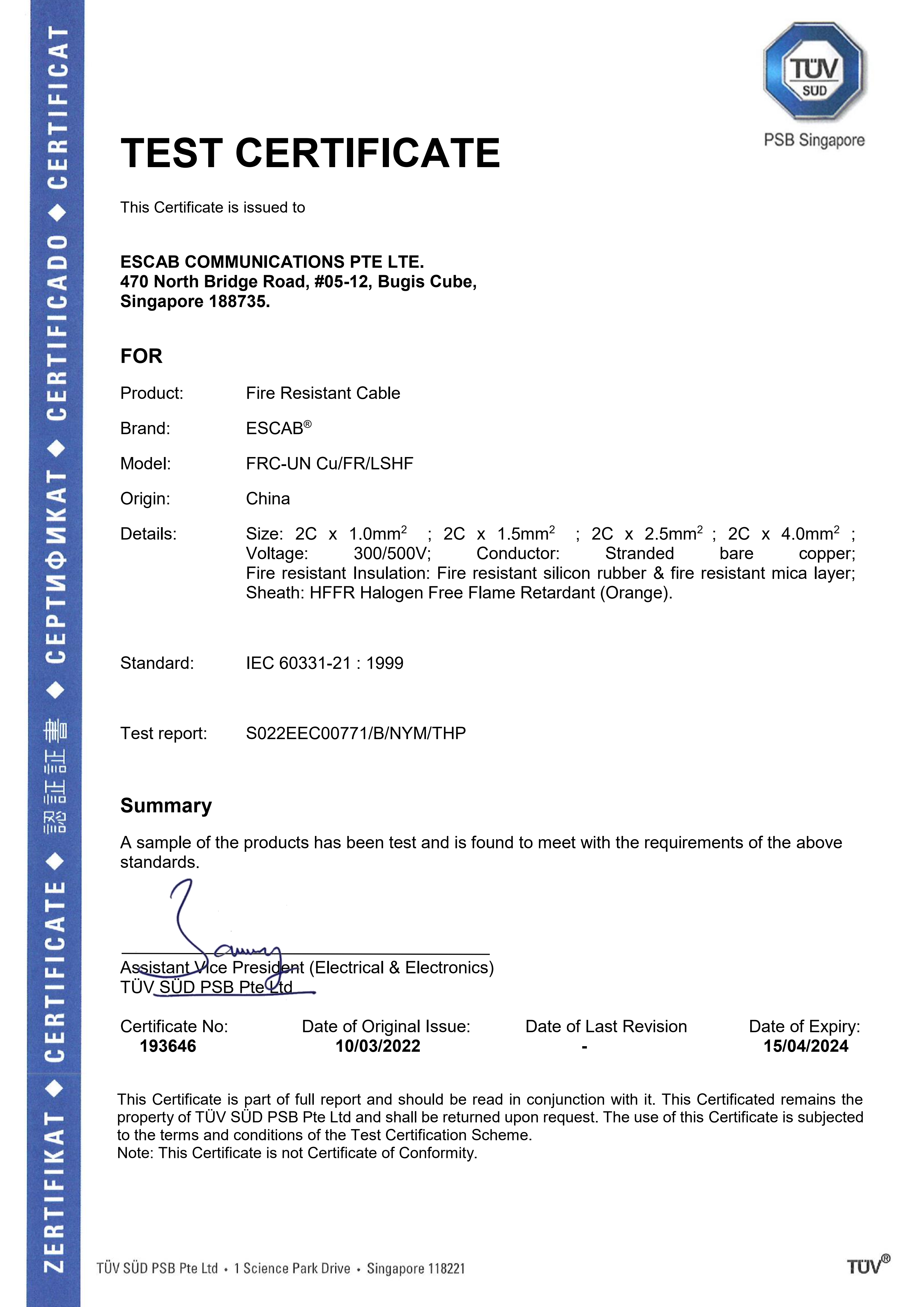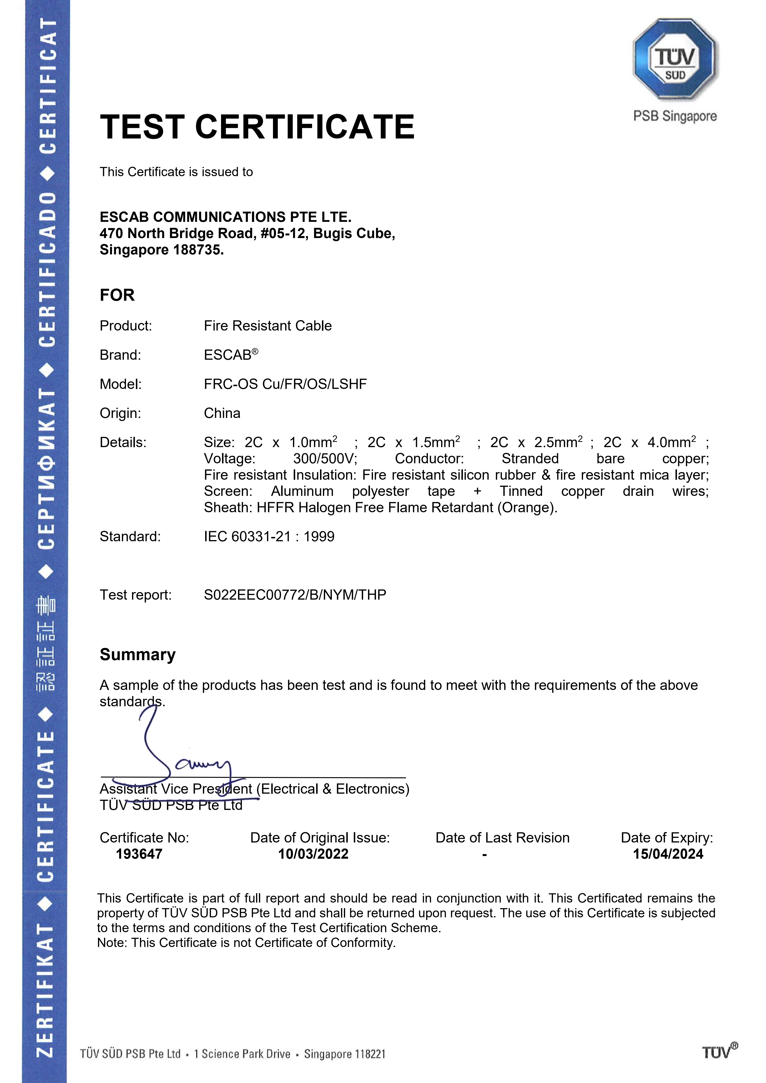 Fire Resistant Cable IEC.60331-21