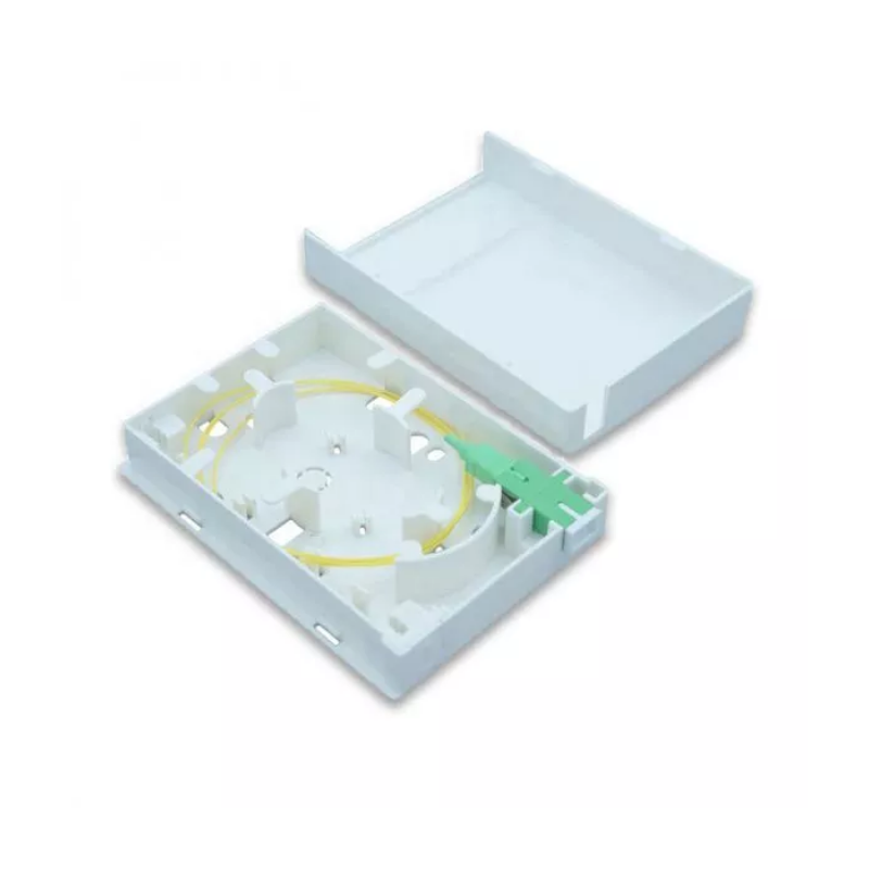 This mini Fiber Optic Socket Panel fiber optic termination box is used for splicing and termination between indoor fiber optic cable and pigtails with SC or LC duplex type. The termination box is used for wall mounted or desktop applications. Made of the plastic material, is easy to install in home or office. Outlets are designed to fit SC fiber optic cable patch cord adapter, used in work location sub-system.