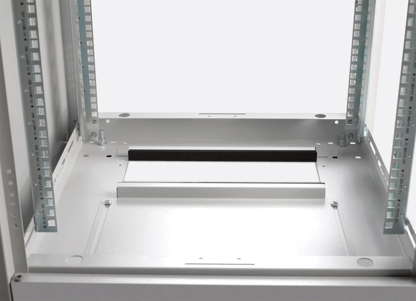 | 3-Flat, single wing solid metal door | 3-Flat metal cover with brush type cable entry | 3-The knocked out blanking plate cable entry |