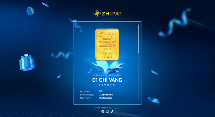 Bước 2. Tại thời điểm trao thưởng đã hẹn trước tại Trung tâm DVKH&BHSP ZHI.PAT hoặc tại nơi mua hàng, khách hàng cung cấp thông tin bao gồm: (1) Giấy tờ tùy thân hợp lệ (Căn cước công dân/Hộ chiếu/Bằng lái xe) trùng khớp với thông tin đã đăng ký trên hệ thống; (2) Thẻ cào trúng thưởng hợp lệ. Trường hợp nhận thưởng tại địa chỉ đã đăng ký, khách hàng cung cấp thông tin thông qua Hotline 0931.333.263 và gửi thẻ cào về Trung tâm DVKH&BHSP ZHI.PAT qua đường bưu điện.