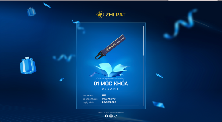 Bước 2. Tại thời điểm trao thưởng đã hẹn trước tại Trung tâm dịch vụ khách hàng & bảo hành sản phẩm ZHI.PAT, địa chỉ 380 Đường số 1, Phường Bình Trị Đông B, Quận Bình Tân, Thành phố Hồ Chí Minh (sau đây gọi là “Trung tâm DVKH&BHSP ZHI.PAT”), khách hàng cung cấp thông tin bao gồm: (1) Giấy tờ tùy thân hợp lệ (Căn cước công dân/Hộ chiếu/Bằng lái xe) trùng khớp với thông tin đã đăng ký trên hệ thống; (2) Thẻ cào trúng thưởng hợp lệ.