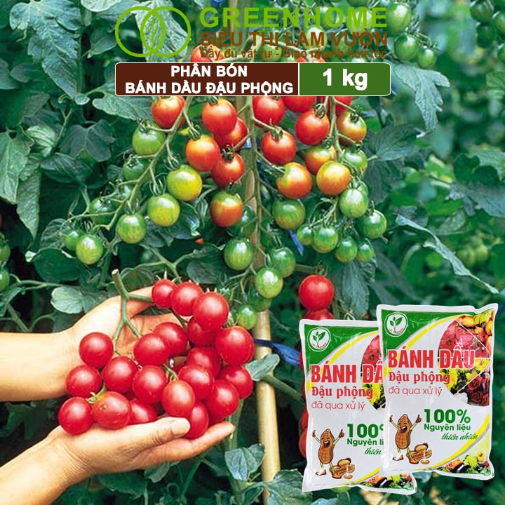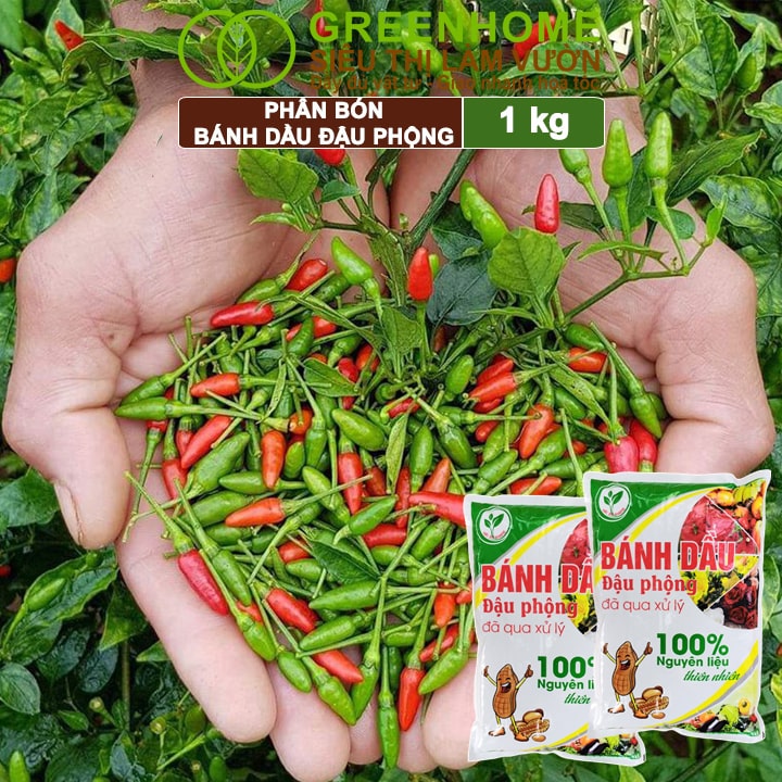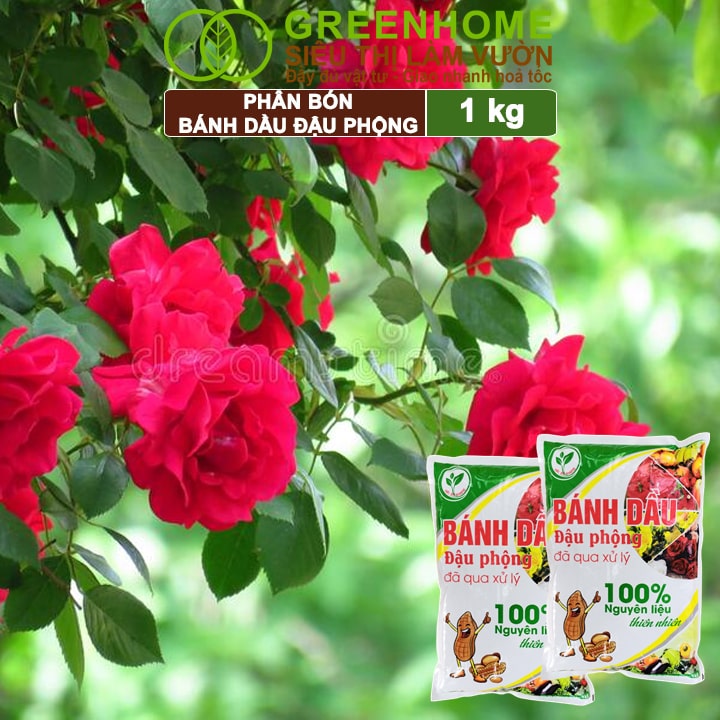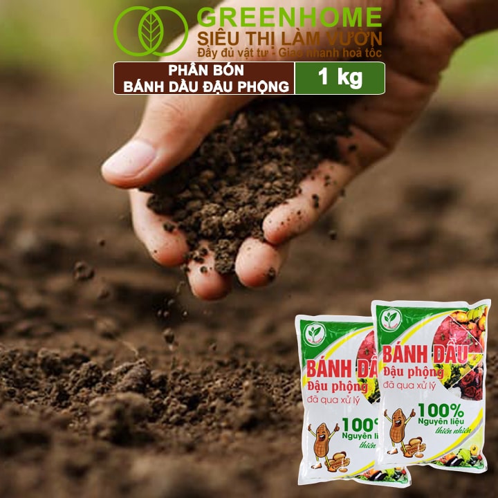 Bánh Dầu Đậu Phộng Greenhome, Bao 1kg, Phân Bón Hữu Cơ Hàm Lượng Đạm Cao, Chuyên Hoa, Rau, Củ, Quả, Kiểng