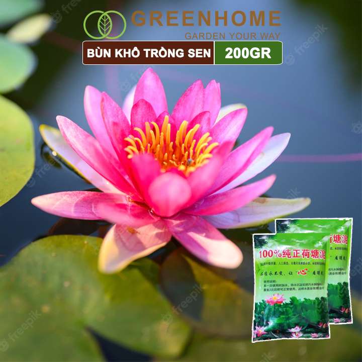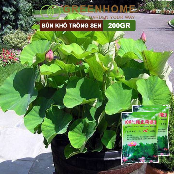 Bùn khô trồng hoa sen, gói 200gr, phù hợp cây thuỷ sinh, ngập nước, cho hoa to, lâu tàn, tốt lá Greenhome