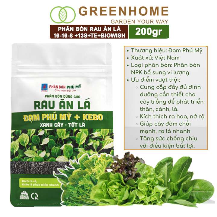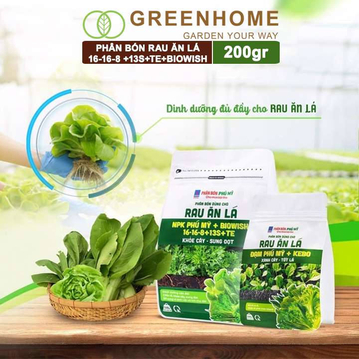 1.Phân Bón Đạm Phú Mỹ cho Rau Ăn Lá KeBo và BIOWISH 16-16-8+13S TE bao 200gr: