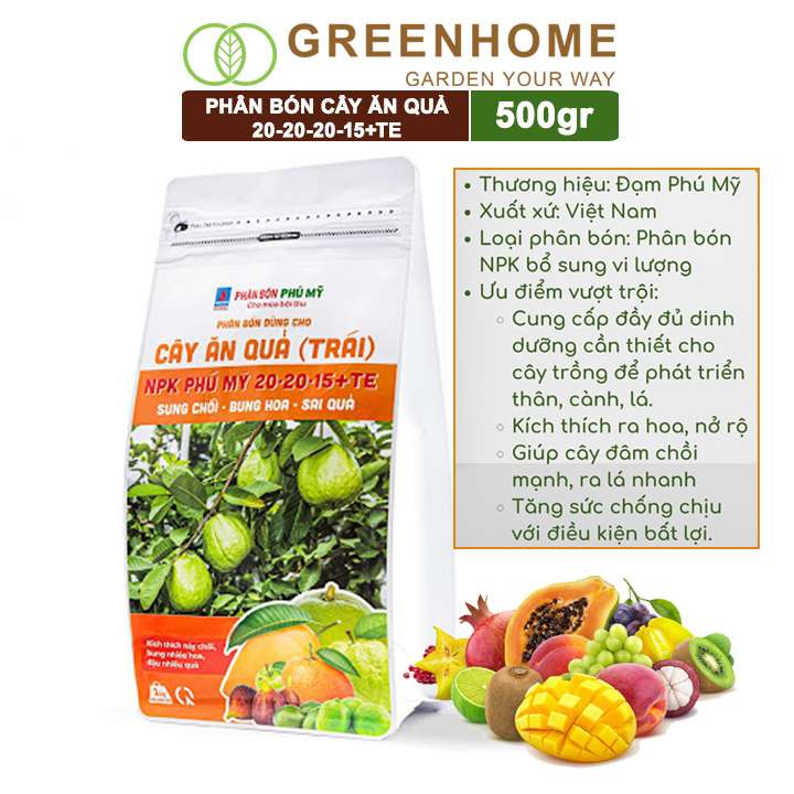 3.Phân Bón NPK Đạm Phú Mỹ cho Cây Ăn Quả 20-20-15+TE bao 500gr: