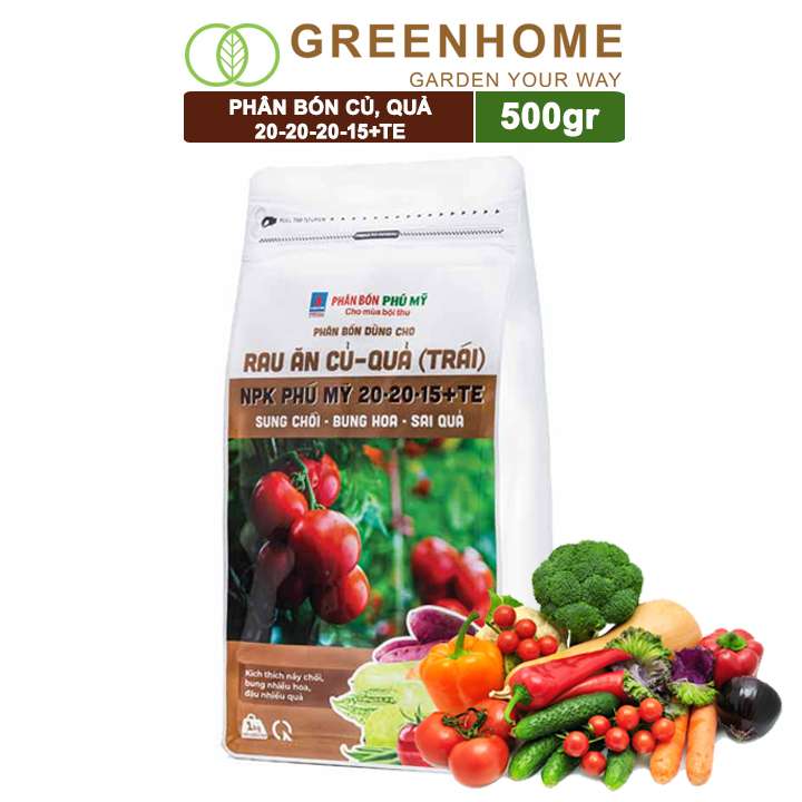 2.Phân Bón NPK Đạm Phú Mỹ cho Cây Rau Ăn Củ Quả 20-20-15+TE bao 500gr: