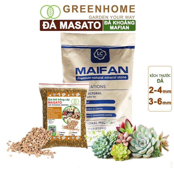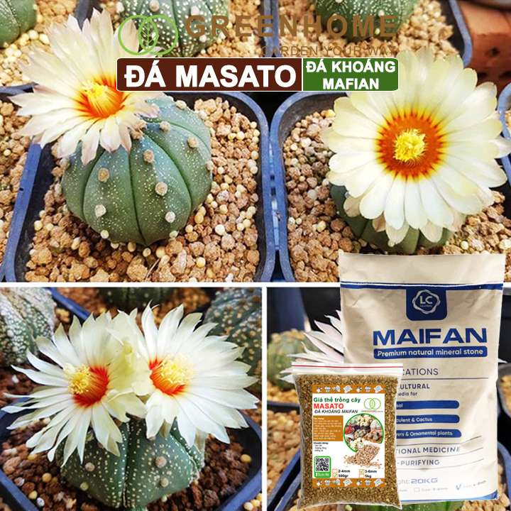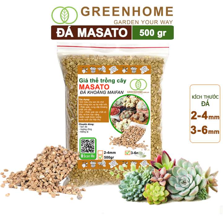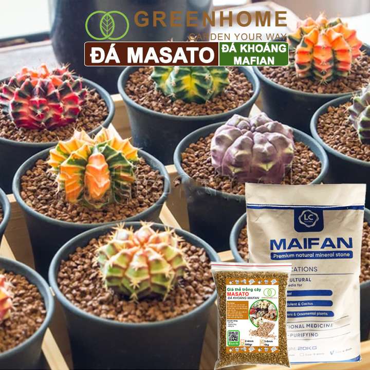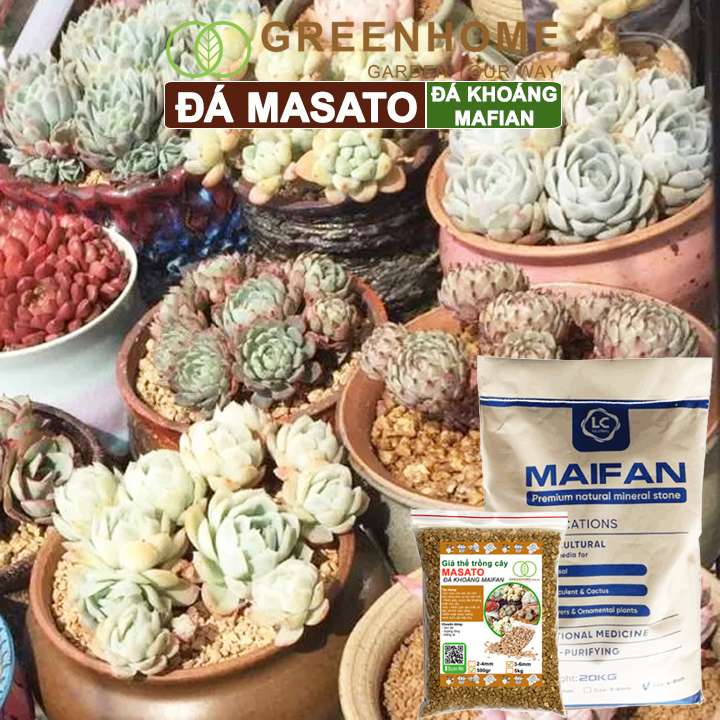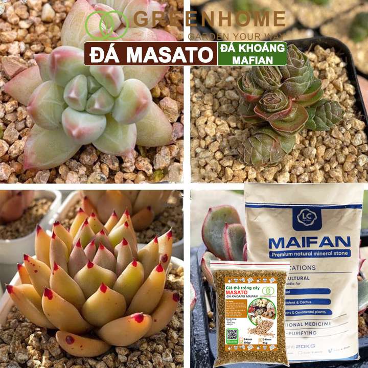 -Masato rãi mặt chậu đẹp mắt: Masato có tính cứng và nặng, nên được cộng đồng sen đá yêu thích dùng rải mặt chậu do khó bị thổi bay. Bản thân đá Masato có màu vàng, khi tưới nước lên càng óng ánh rực rỡ, chậu cây lại càng toả sáng dưới nắng.