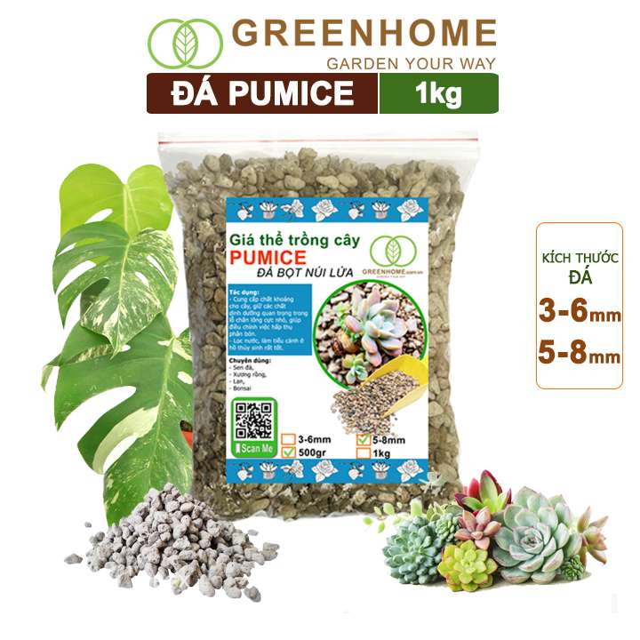 Đá Pumice , đá bọt núi lửa, lót chậu, trộn đất sen đá, xương rồng, phong lan, nhiều size lựa chọn |Greenhome