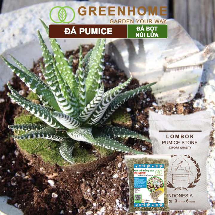 – Giá thể trồng & làm vườn đá bọt Pumice: Được phối trộn với các loại rêu than bùn Peatman, đá Perlite, đá Vermiculite, đất nung Akadama,… để làm giá thể trồng thay thế đất thịt nặng cho các loại cây
