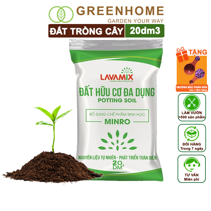 Đất trồng cây Lavamix với thành phần là đất mùn phù sa và các chất hữu cơ tự nhiên giàu dinh dưỡng; khoáng chất đa, trung, vi lượng; vi sinh vật có ích và nguồn hữu cơ sinh học Minro.