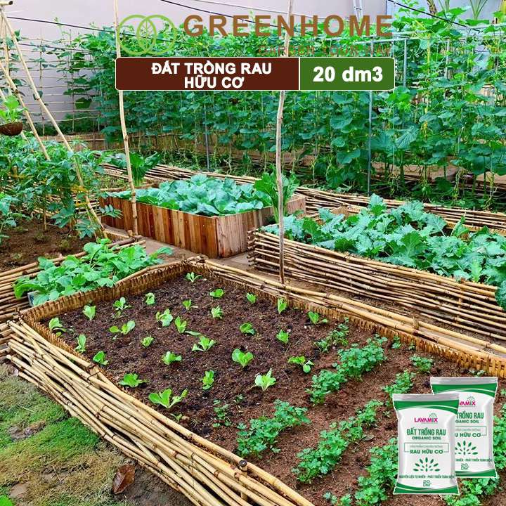 Đất trồng rau Lavamix, bao 20dm3 (8-10kg), hữu cơ, dùng ngay không cần bổ sung thêm phân bón |Greenhome