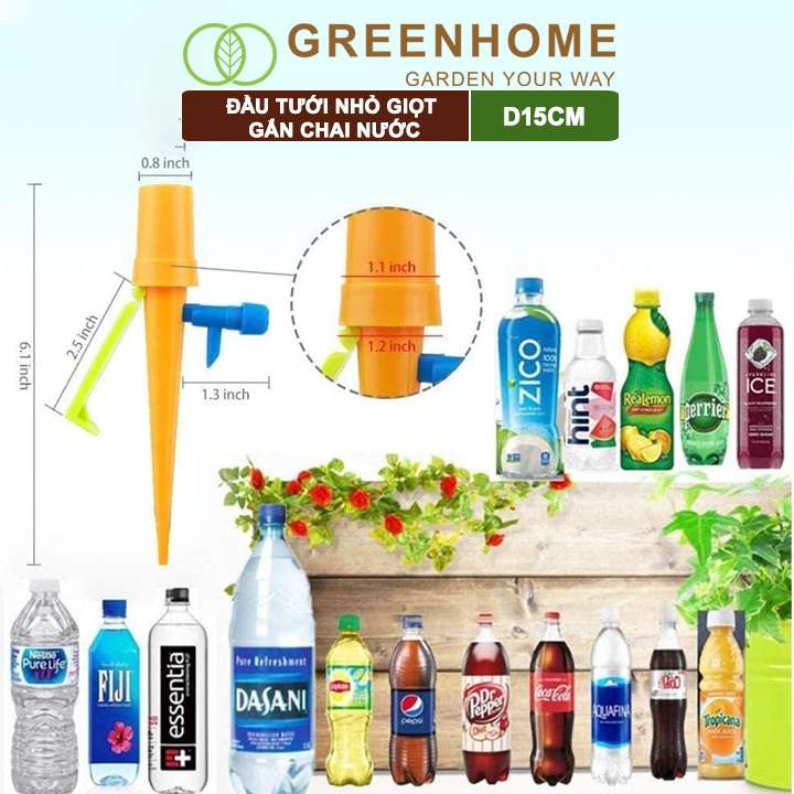 Đầu tưới nhỏ giọt gắn chai nước có tính ứng dụng cao cho: cây, hoa, tưới nước, thích hợp cho khách du lịch.