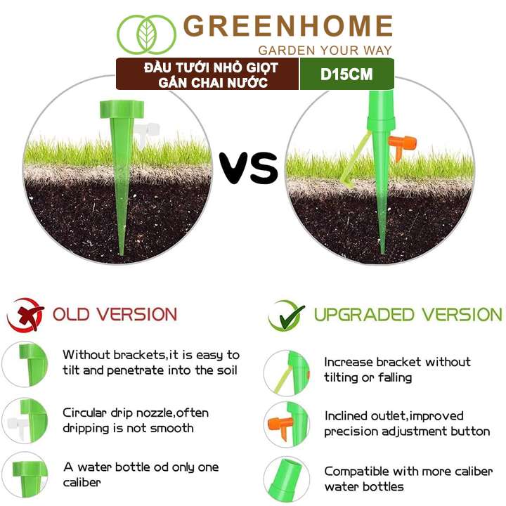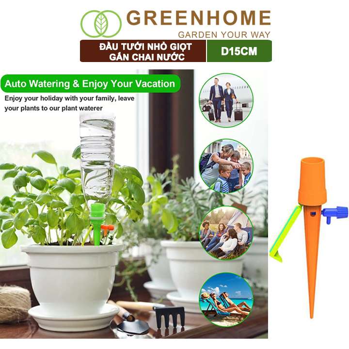 Đầu tưới nhỏ giọt gắn chai nước, D15cm, có chân chống đỗ, chỉnh được lượng nước, màu ngẫu nhiên |Greenhome