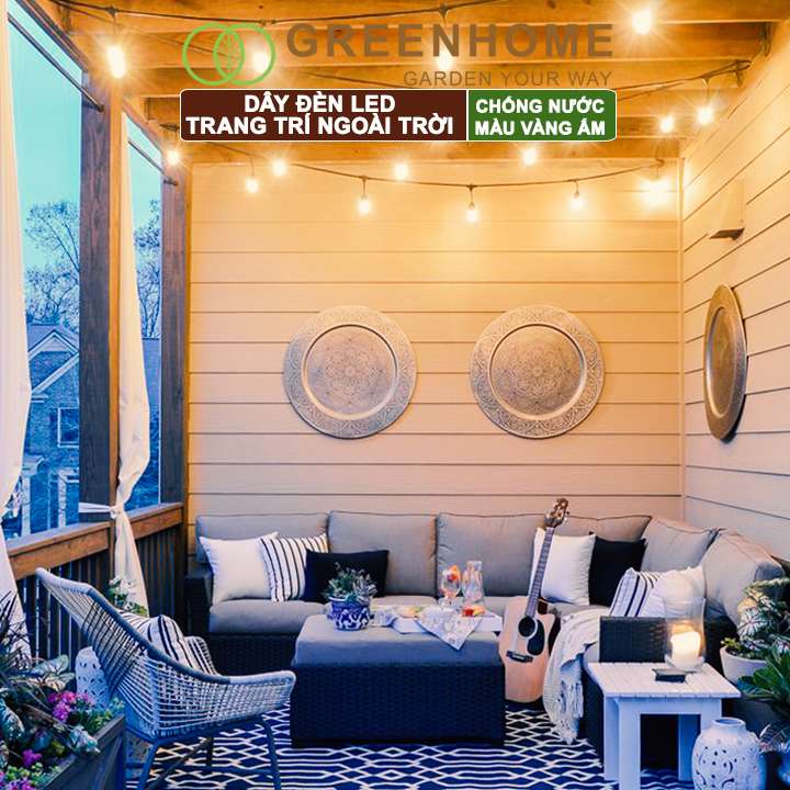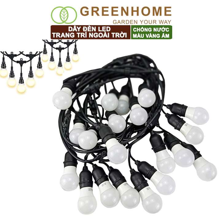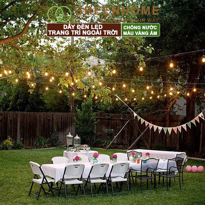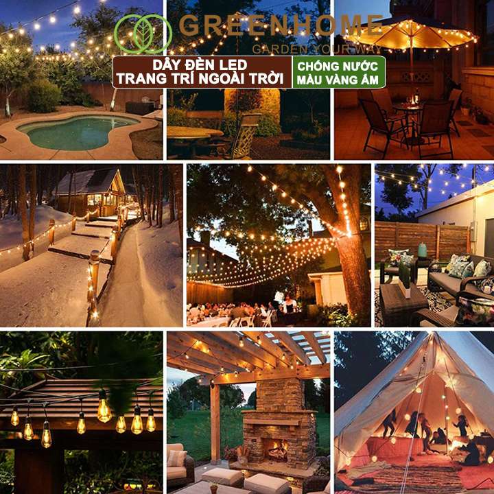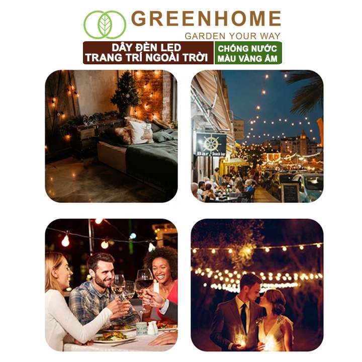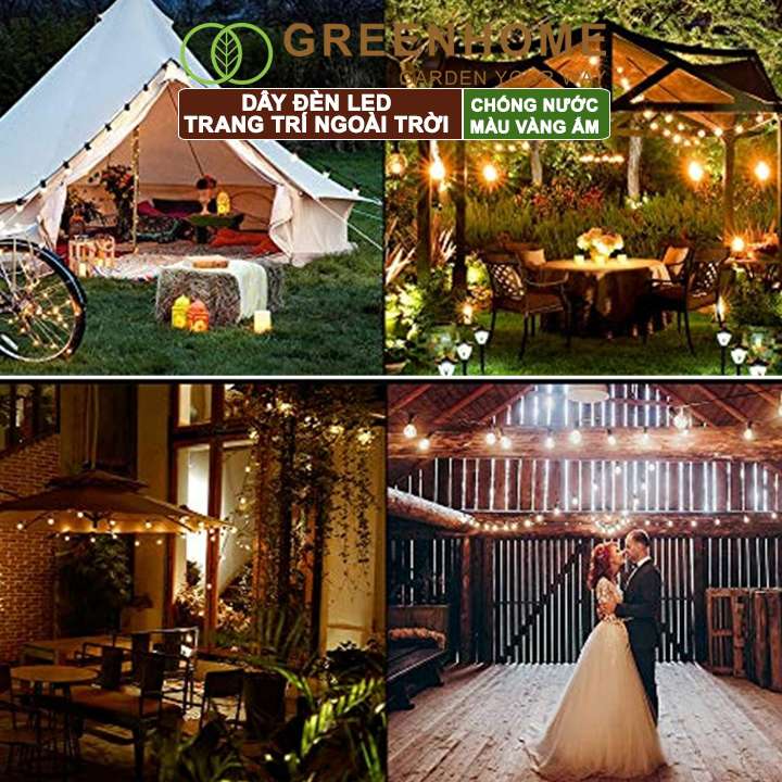 Dây đèn Led trang trí ngoài trời, màu Vàng ấm, chống bụi, chống nước, tiết kiệm điện |Greenhome
