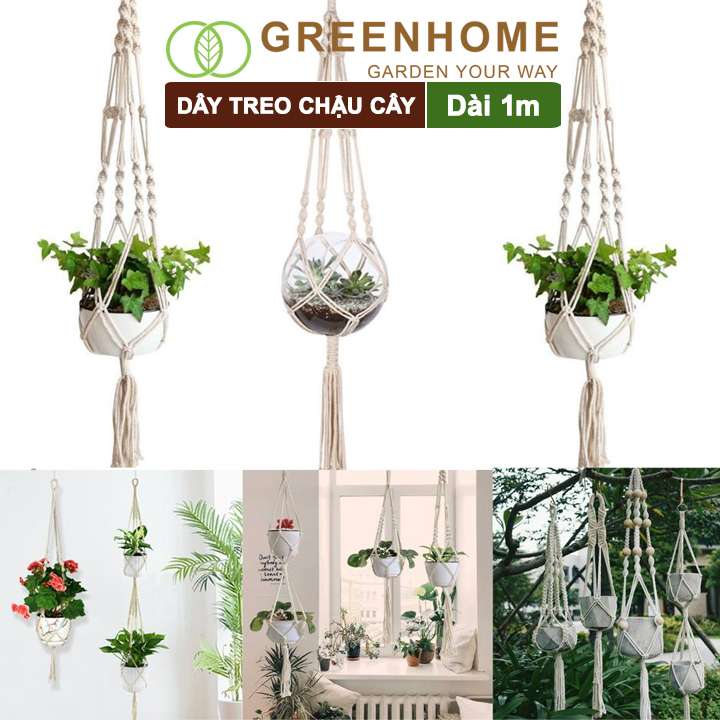 Dây treo chậu cây, dài 1m, sợi cotton đan thủ công, tinh tế, thẩm mỹ cao, phù hợp với các loại chậu |Greenhome