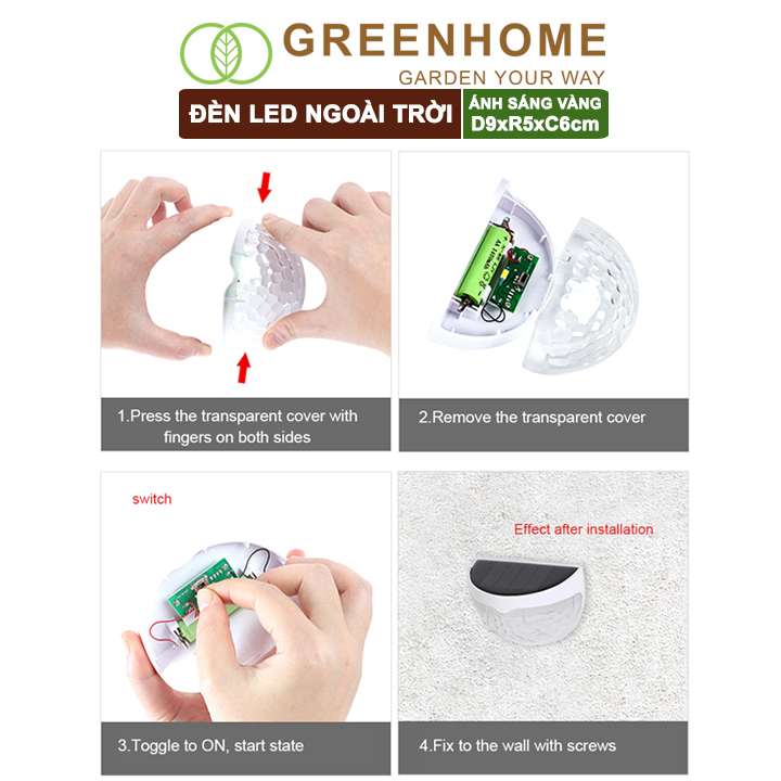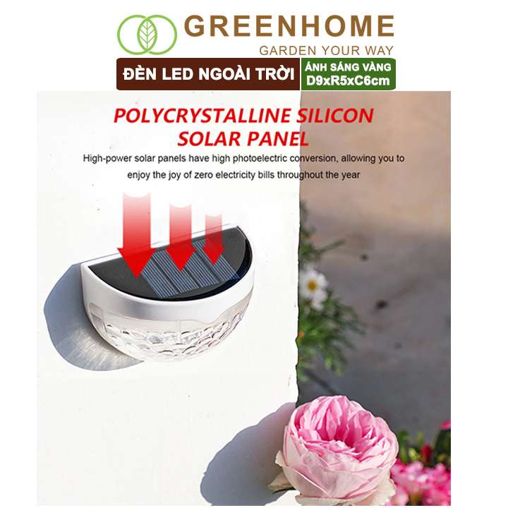 Đèn led năng lượng mặt trời, D9xR5xC6cm, ánh sáng vàng , trang trí sân vườn, cầu thang |Greenhome