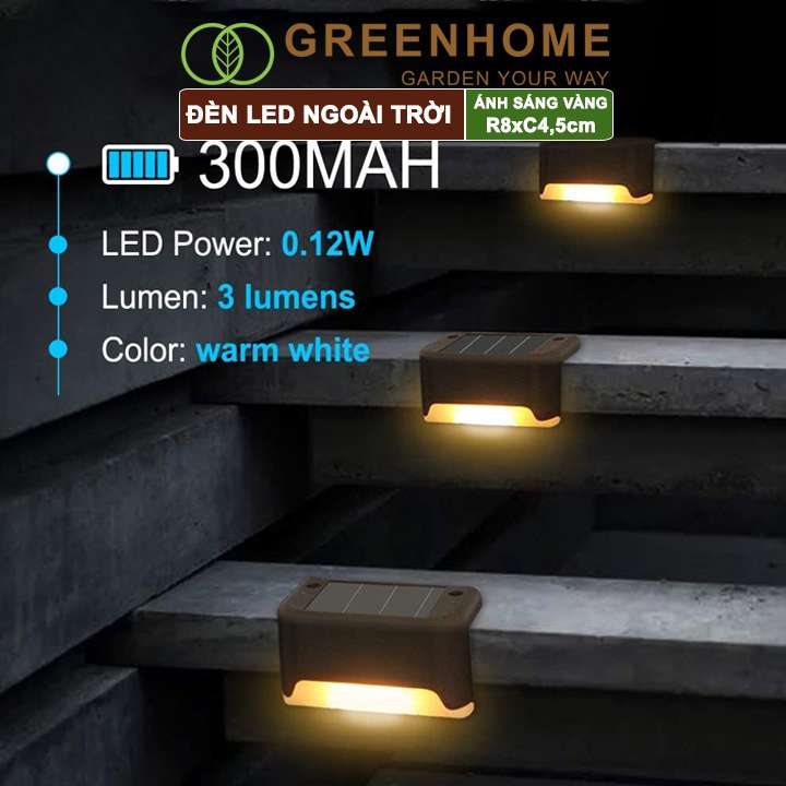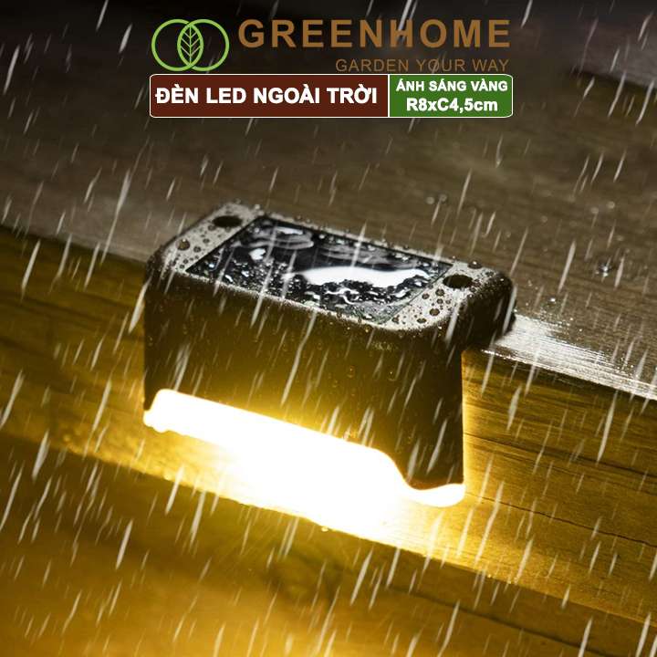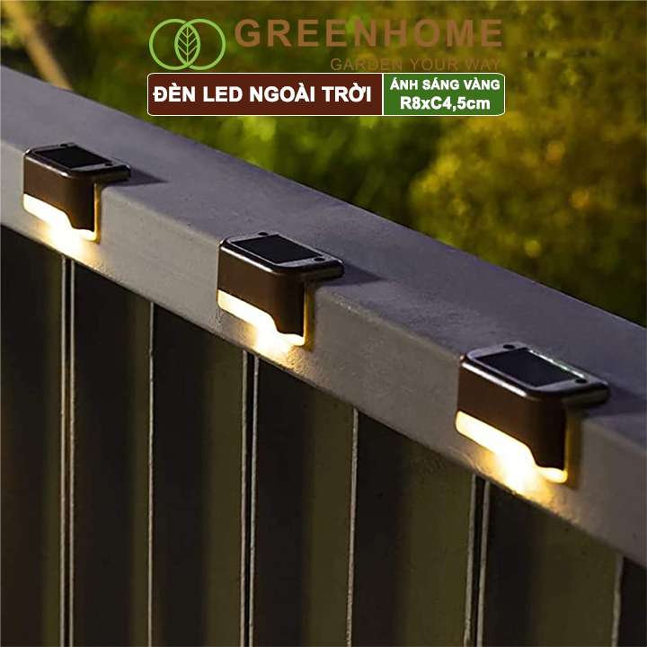 Đèn Led năng lượng mặt trời, R8xC4,5cm, đèn vàng ấm, chống nước, ốp lan can, trang trí ngoài trời |Greenhome