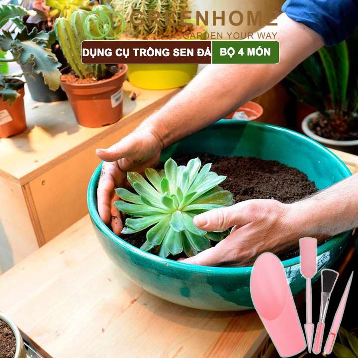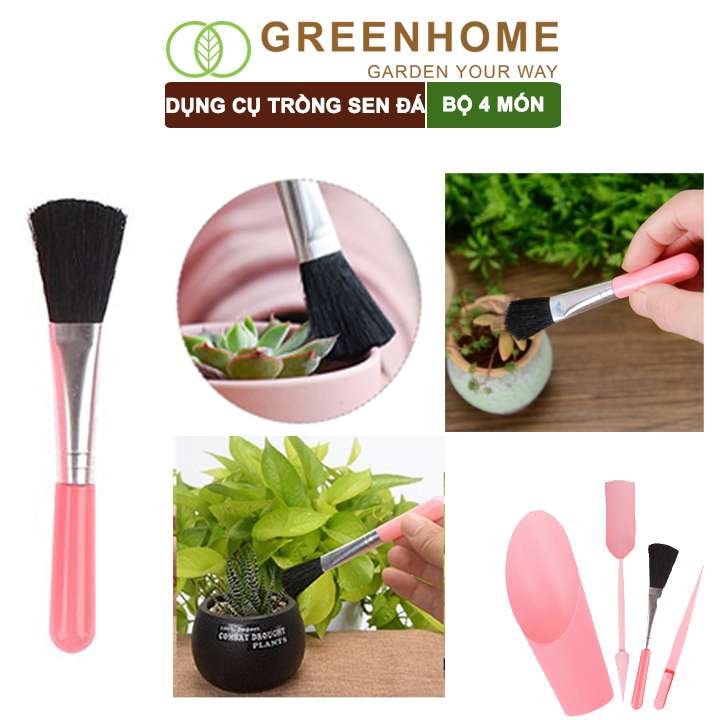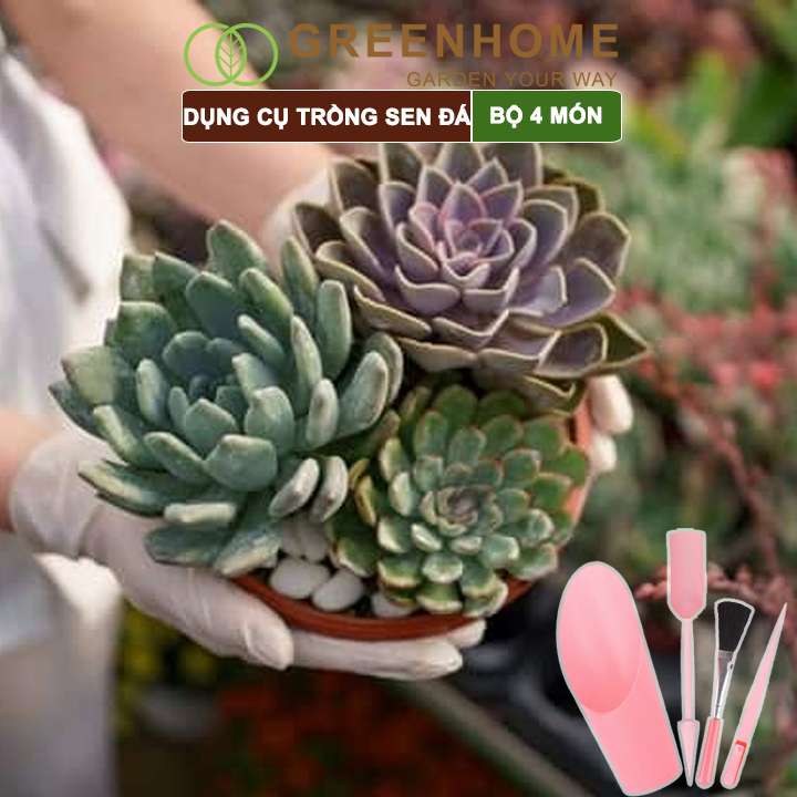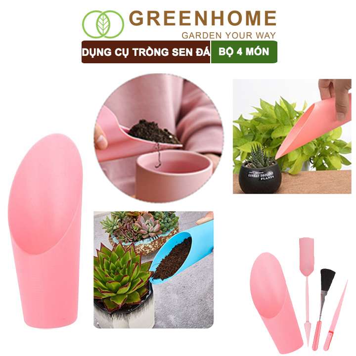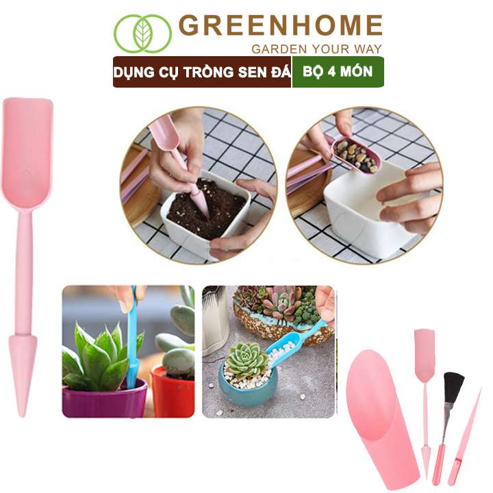 Dụng cụ làm vườn mini, 4 món, màu hồng, chuyên dụng cụ trồng sen đá, xương rồng, tiểu cảnh mini |Greenhome