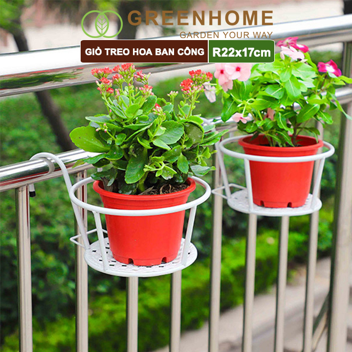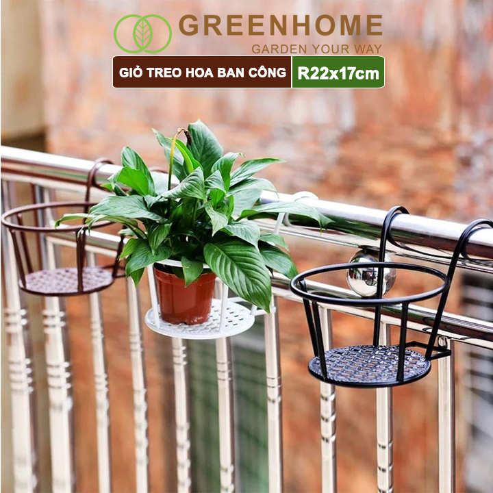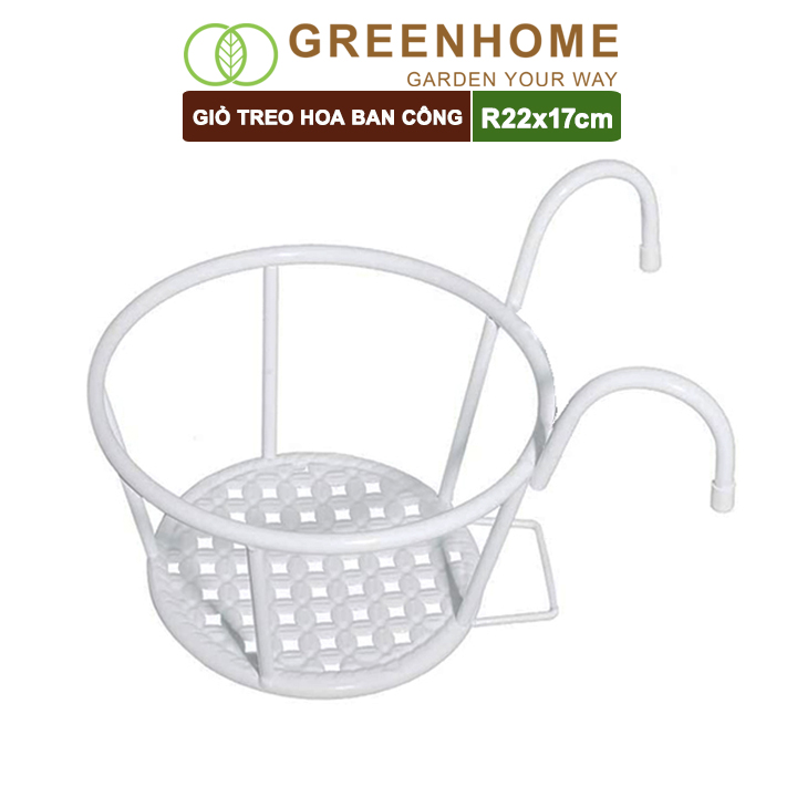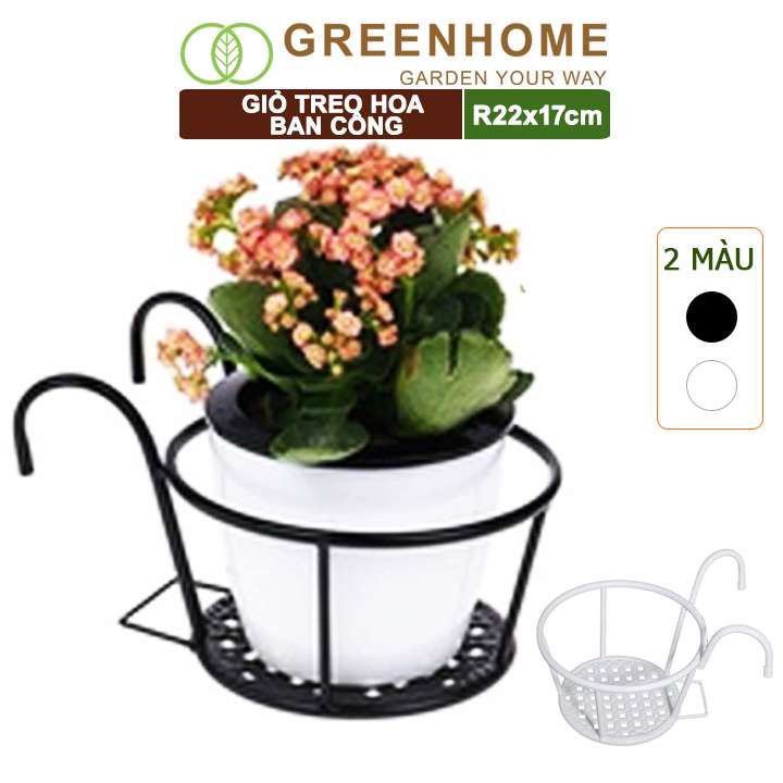 Giỏ treo hoa ban công, D22xC18cm, chất liệu sắt sơn tĩnh điện, phù hợp với mọi lan can, nhiều màu để lựa chọn |Greenhome