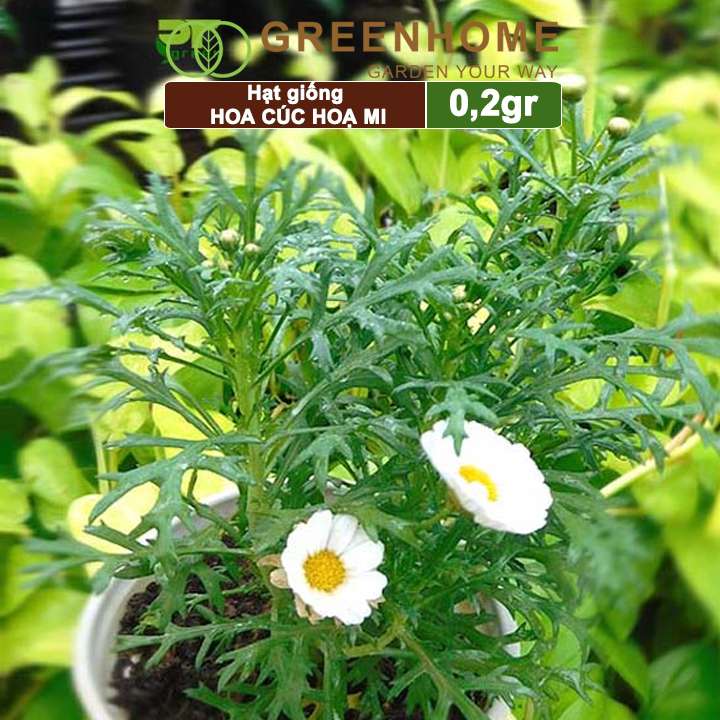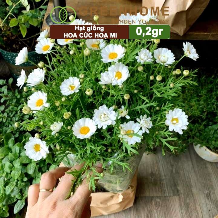 Hạt giống Cúc hoạ mi Greenhome, gói 0,2gr, dễ trồng quanh năm, hoa trắng, nhuỵ vàng H04