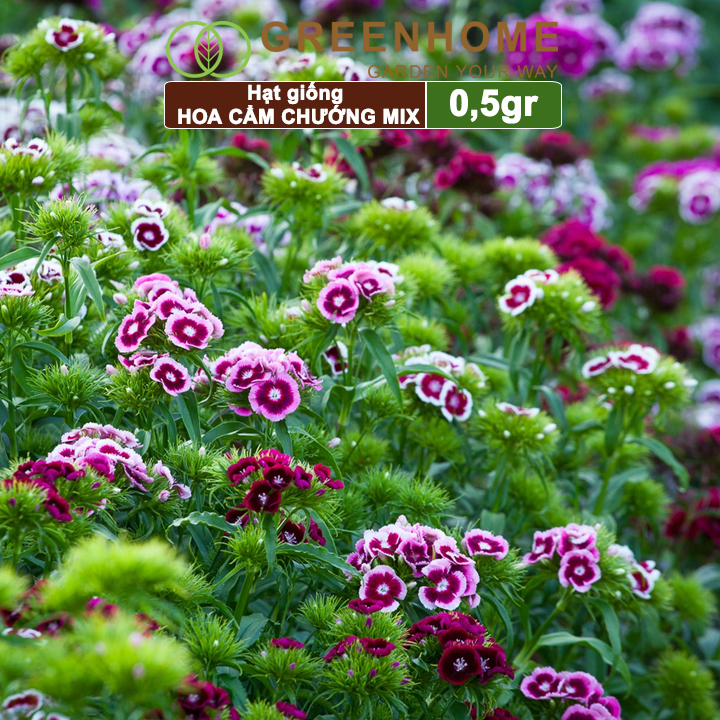 Hạt giống hoa Cẩm chướng mix, gói 0,5gr ,chùm, nhiều màu rực rỡ H07 |Greenhome