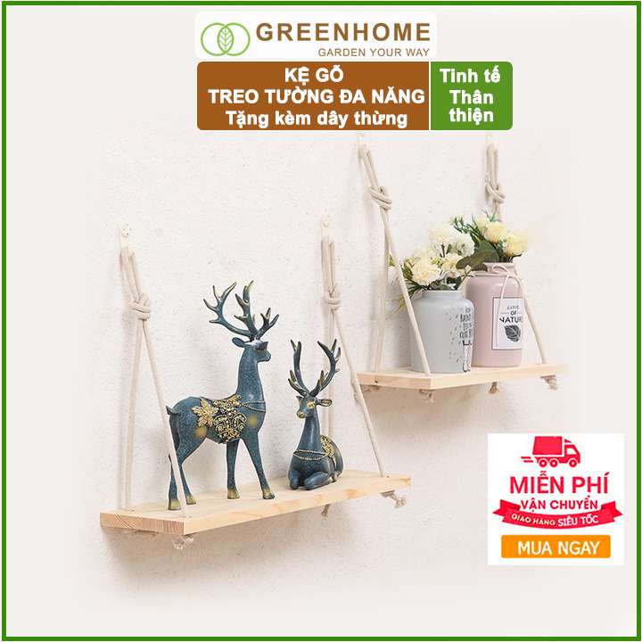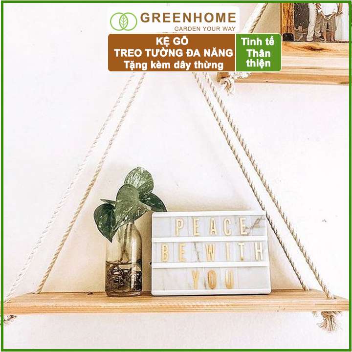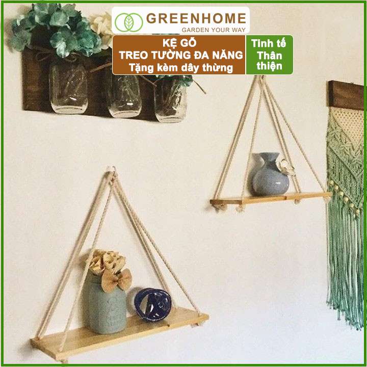 -Sản phẩm là một lựa chọn tuyệt vời để tạo nét phá cách trong không gian nhà bạn. Kệ gỗ treo tường bằng dây thừng vừa là một món đồ decor xinh xắn, để cây cảnh và giúp bạn sắp xếp đồ đạc gọn gàng, tiết kiệm diện tích hơn.