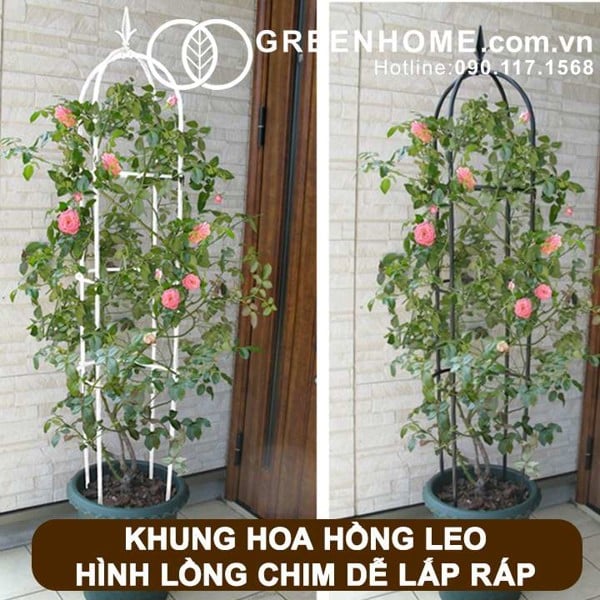 Khung được lắp ráp từ những thanh sắt sơn tĩnh điện, dễ dàng sử dụng và giúp cây leo có thể vươn cao, bám trụ chắc chắn. Bộ khung giàn dạng lồng này nhẹ, dễ di chuyển, rất tiện lợi khi cần phải thay đổi vị trí cây.