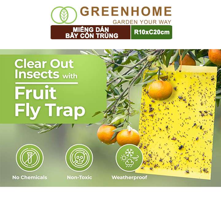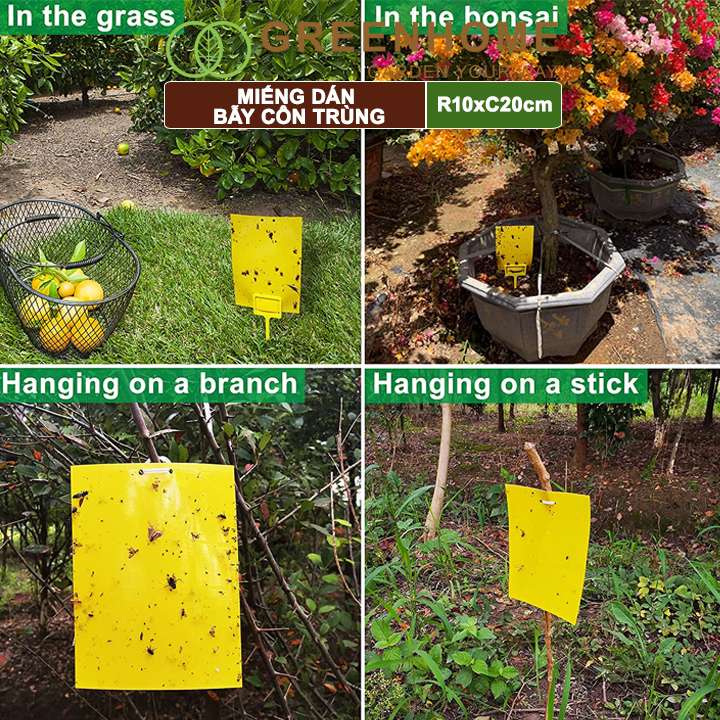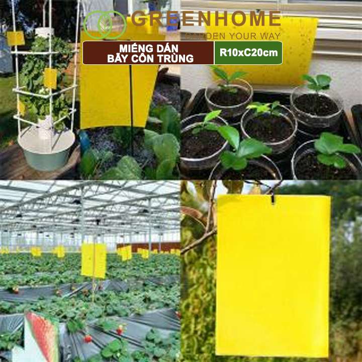 Miếng dán bẫy côn trùng, R10xC20cm, 2 mặt, siêu dính, hiệu quả, tiết kiệm chi phí, thân thiện môi trường |Greenhome