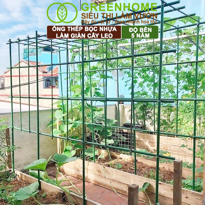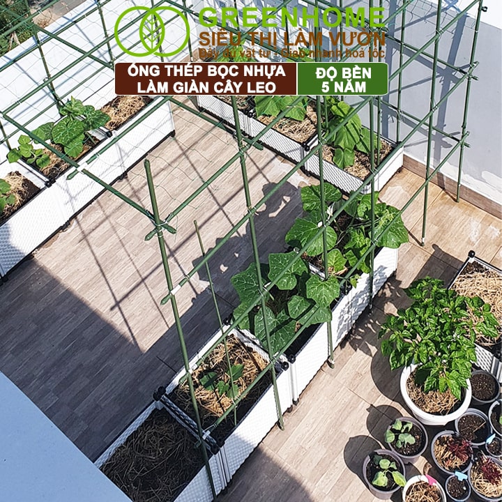 Ống Thép Bọc Nhựa Greenhome, Daim, Nhật Bản, Làm Khung Hoa Hồng Leo, Giàn Leo Bầu, Bí, Mướp, Độ bền 5 năm