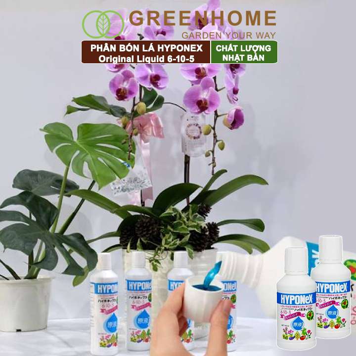 Dùng phân bón Hyponex Original Liquid 6-10-5 giúp cây xanh lá tốt lá cực nhanh, hình thành mầm và kích nãy chồi mạnh