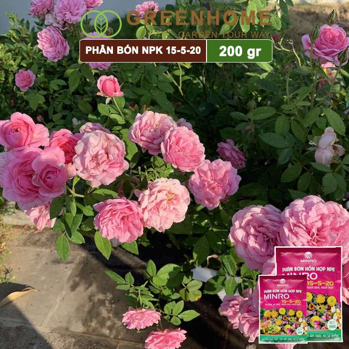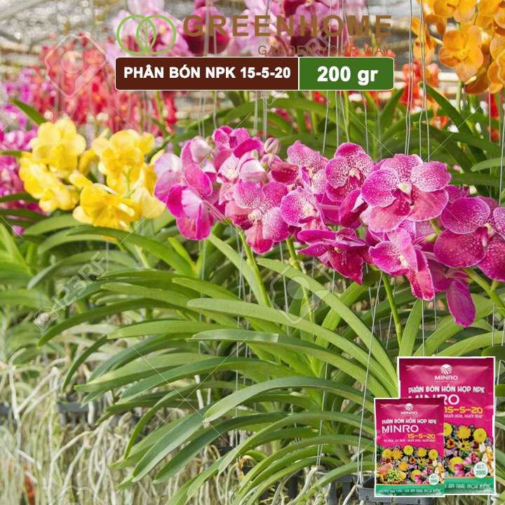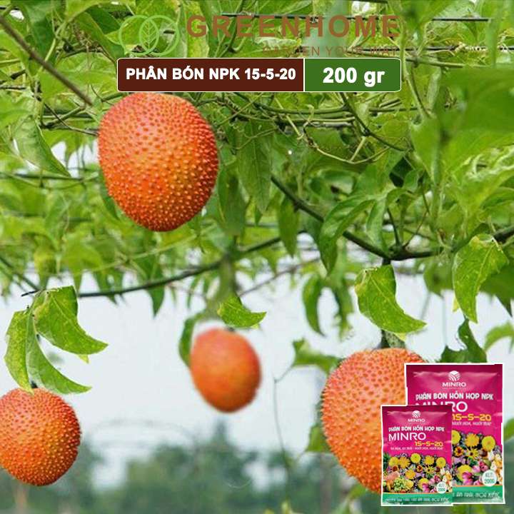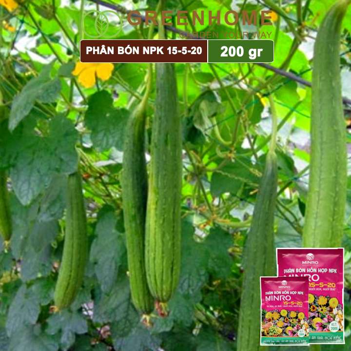 Phân NPK 15-5-20 Minro, bao 200gr, phân bón kích ra hoa, đậu trái, nuôi hoa, nuôi trái |Greenhome