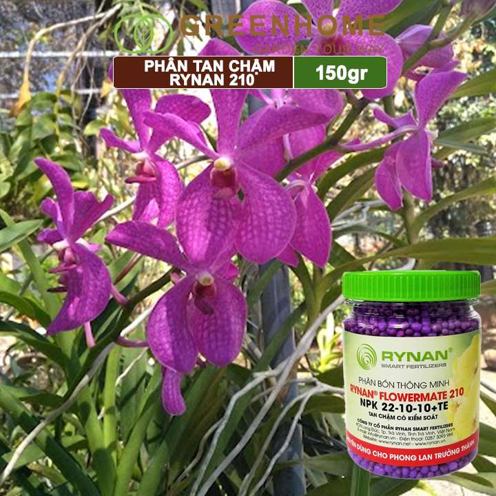 -Dùng cho lan trong giai đoạn trưởng thành và giai đoạn sau ra hoa Phân tan chậm Rynan 210 Cung cấp khoáng NPK và trung vi lượng cho cây một cách đầy đủ
