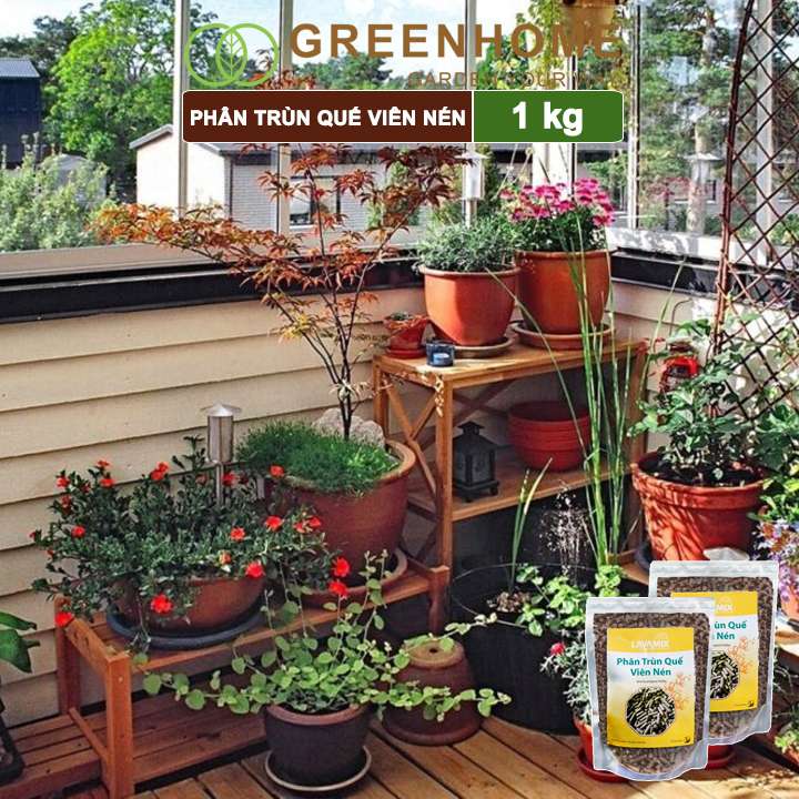 Phân trùn quế viên nén Lavamix, bao 1kg, nguyên chất bổ sung dinh dưỡng cho cây, hoa, cải tạo đất |Greenhome