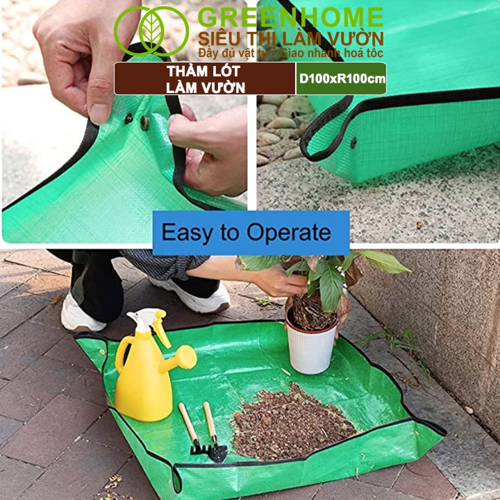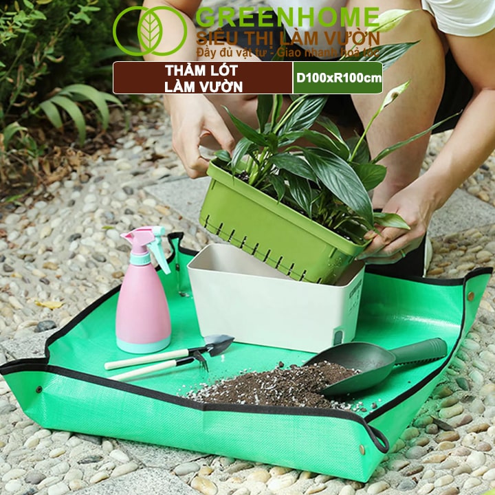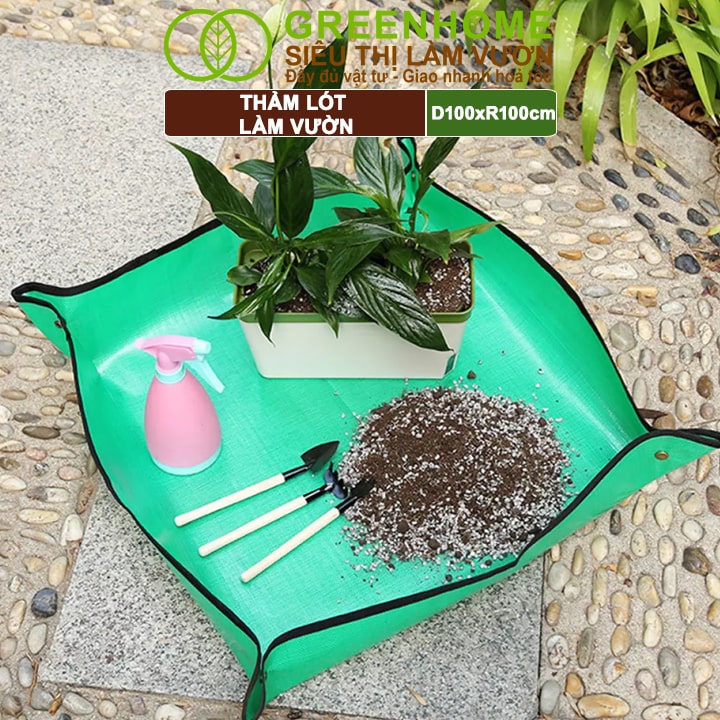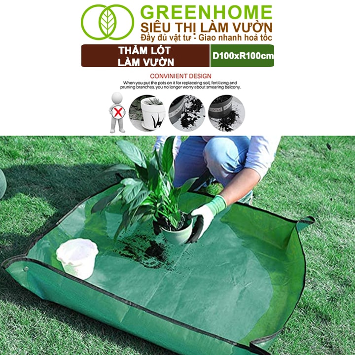 Thảm Lót Làm Vườn Greenhome, D100xR100cm, Trộn Đất, Thay Chậu, Trồng Cây Sạch Sẽ Chống Thấm Nước, Dễ Vệ Sinh, Gấp Gọn