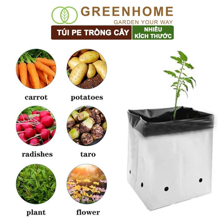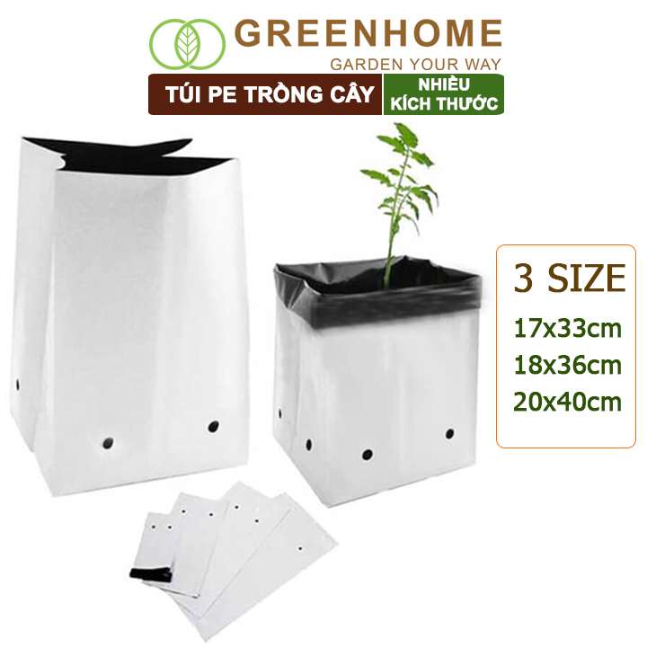 Túi PE trồng cây, 2 lớp, nhiều kích thước, chống UV tiện lợi, độ bền 1,5 năm, trồng rau, hoa, dâu tây |Greenhome