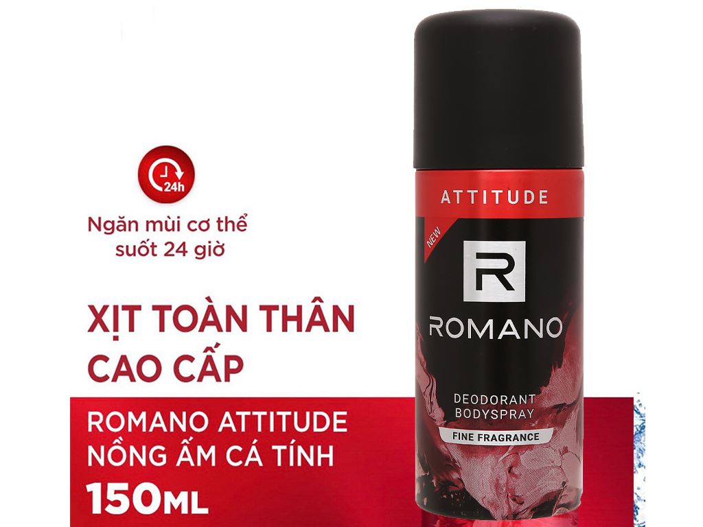Xịt Toàn Thân Romano 150ml thuộc thương hiệu hóa mỹ phẩm dành riêng cho nam giới đến từ một phần của tập đoàn đa quốc gia Ý Wipro Unza có trụ sở ở Singapore được sản xuất tại Việt Nam. Sản phẩm mang đến giải pháp khử mùi triệt để nhất cho nam giới và luôn tiên phong trong mọi lĩnh vực khử mùi tạo hương thơm cho cơ thể.