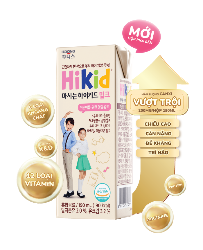 Thấu hiểu sâu sắc trăn trở của ba mẹ cùng nhu cầu phát triển toàn diện của con, Hikid theo đuổi sứ mệnh tạo ra những giải pháp dinh dưỡng an toàn mang chất lượng cao cấp cho trẻ em. Kết hợp giữa nghiên cứu sâu rộng và sự đổi mới, sữa tăng chiều cao Hikid mang đến công thức chuyên biệt, sở hữu yếu tố tăng trưởng chiều cao từ sữa non và các dưỡng chất thiết yếu khác góp phần tạo nên thế hệ trẻ em Châu Á nói chung và trẻ em Việt Nam nói riêng chiều cao TĂNG HẠNG - VƯƠN TẦM.