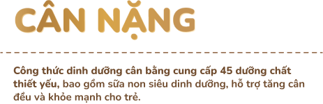 - Hỗ trợ tăng cân đều: Công thức dinh dưỡng cân bằng cung cấp 45 dưỡng chất thiết yếu, bao gồm sữa non siêu dinh dưỡng, hỗ trợ tăng cân đều và khỏe mạnh cho trẻ.