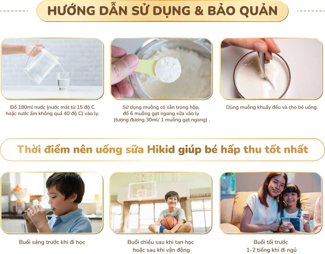 - Sở hữu phương pháp pha trộn hạt sữa dạng khô, giữ nguyên đầy đủ chức năng nuôi dưỡng vốn có & tăng khả năng hòa tan. Đặc biệt, Hikid có thể dễ dàng sử dụng nước mát từ 15 độ C, đặc biệt thích hợp cho nhu cầu ở những nơi có khí hậu nhiệt đới, nóng bức.