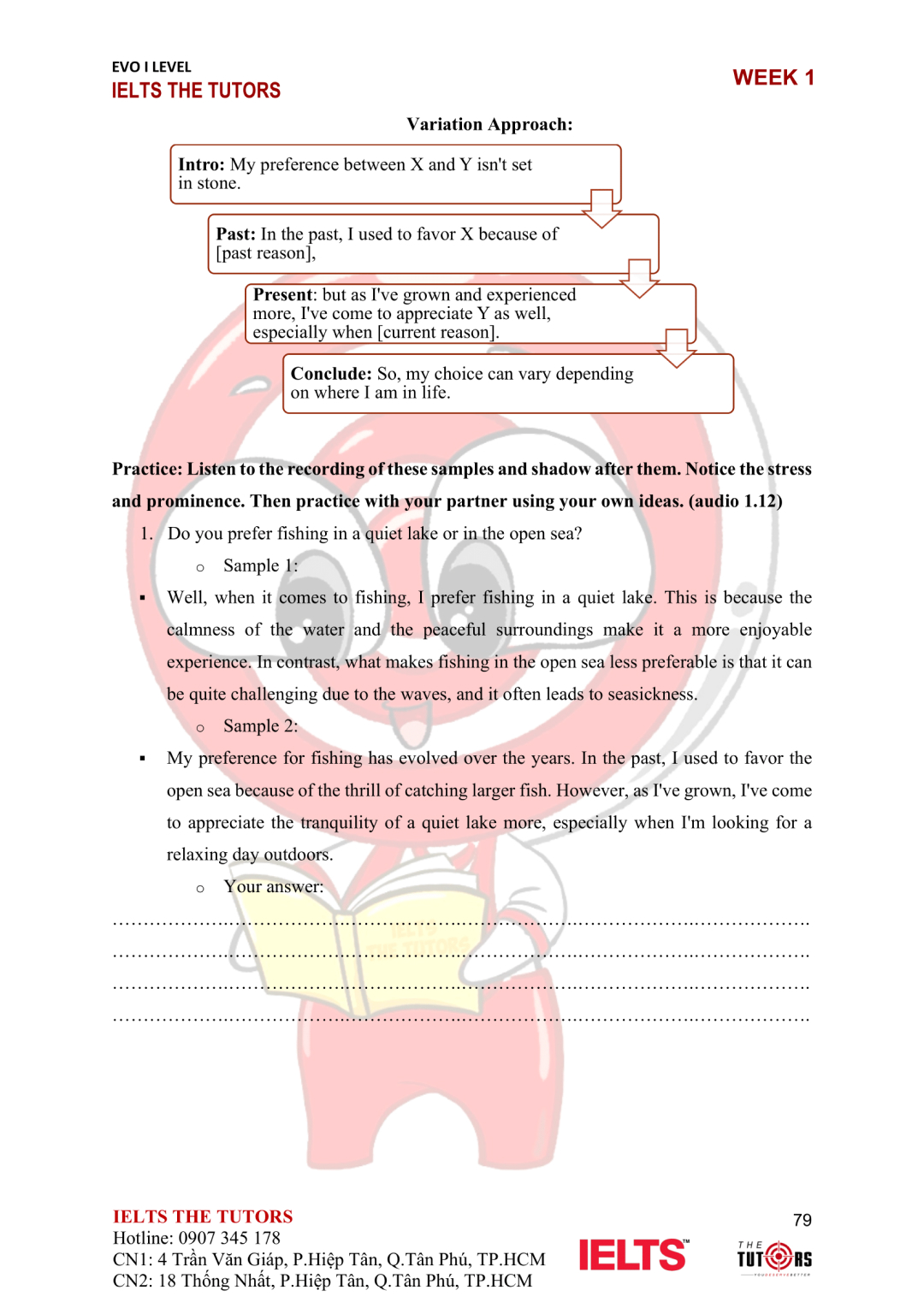 Speaking: Phát triển kỹ năng trả lời Part 3 với các chủ đề khó. Luyện tập sử dụng từ vựng nâng cao và cách lập luận chặt chẽ.