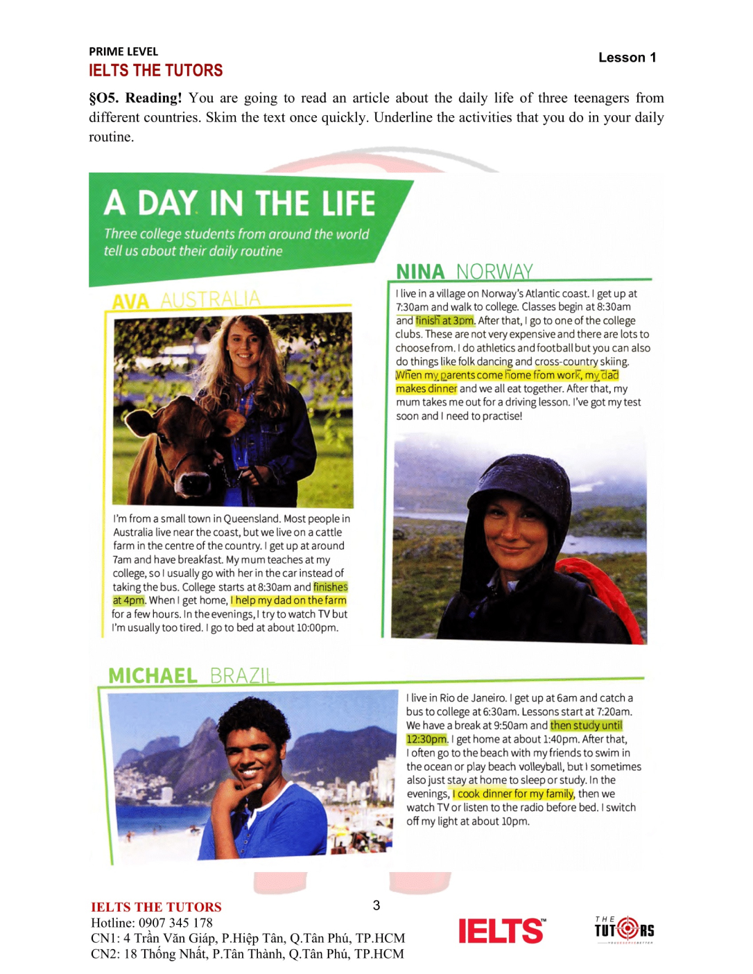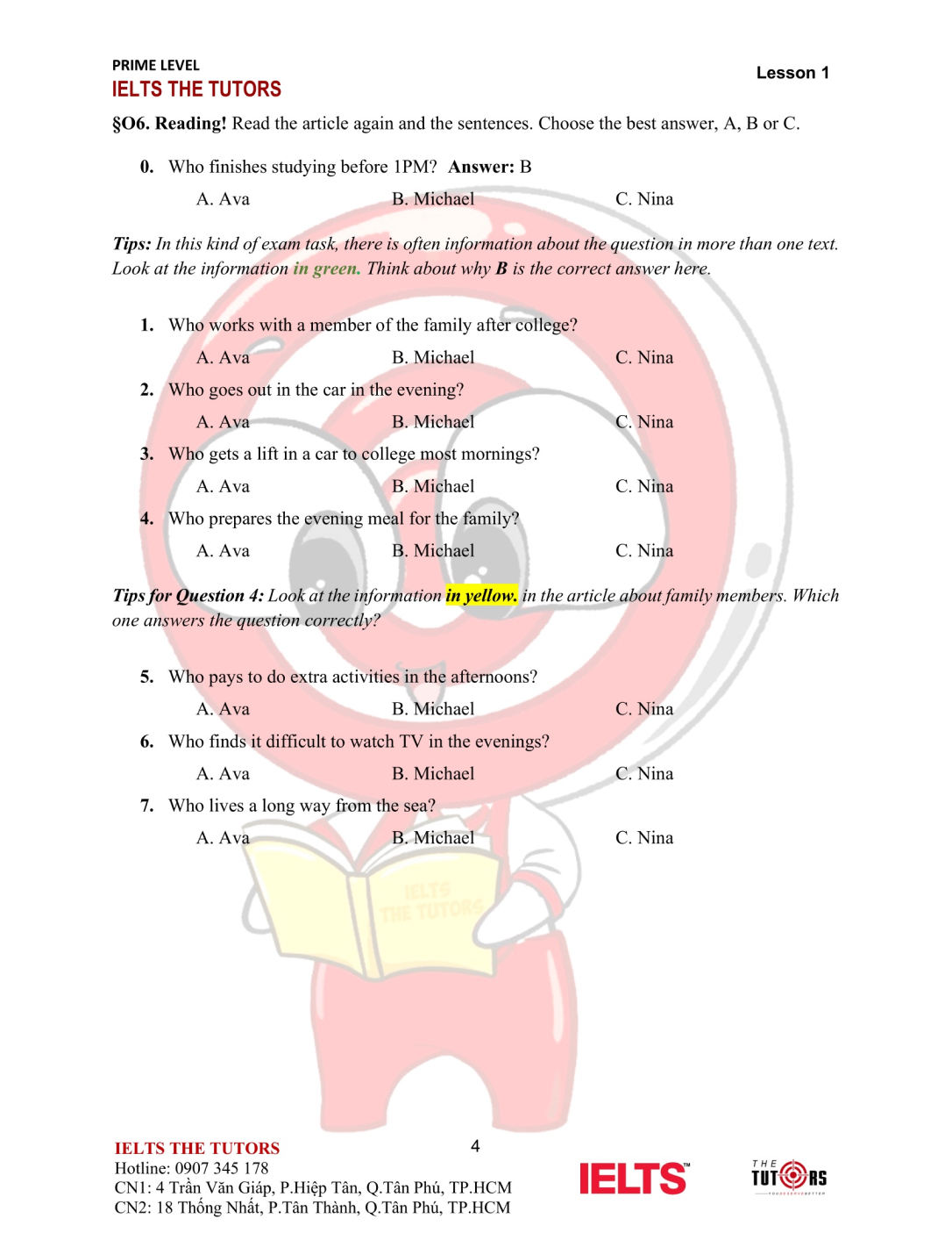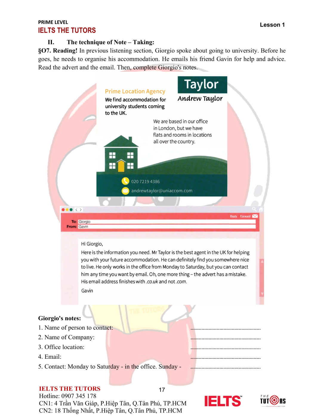 Listening/Reading: Kiến thức Grammar và Vocab trong khoá Prime sẽ thuần thục thông qua tiếp cận bước đầu phương pháp xử lý các dạng bài nền tảng của IELTS: Điền từ, Đọc/Nghe để trích xuất các thông tin phụ/chính, True/False/Not Given, trắc nghiệm…