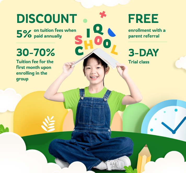 At IQ School, the early education method helps children activate sensitive neural connections, fostering a desire to explore the world through multiple senses and perspectives, providing valuable experiences. As a result, children will develop comprehensively in terms of intellect, language, social skills, logical thinking, and physical health.