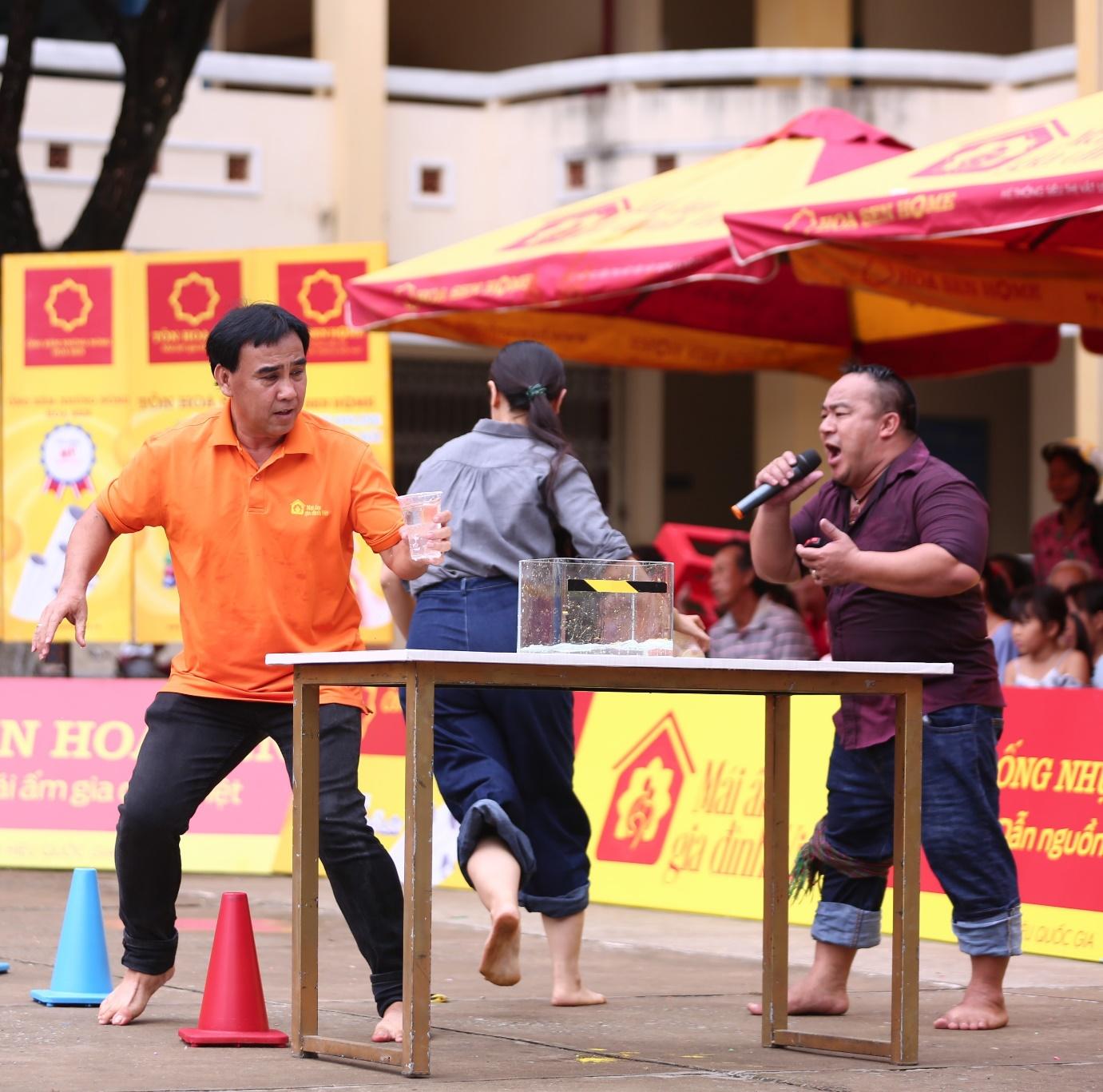 Về phía Quyền Linh, nam MC sẵn sàng hỗ trợ đồng nghiệp. “Cầm trịch” Mái ấm gia đình Việt nhiều mùa nhưng đây là lần hiếm hoi anh được trực tiếp thực hiện các thử thách. Anh cùng Á hậu Thủy Tiên đã nỗ lực hết mình khi vận chuyển nước vượt qua các chướng ngại vật về đích.