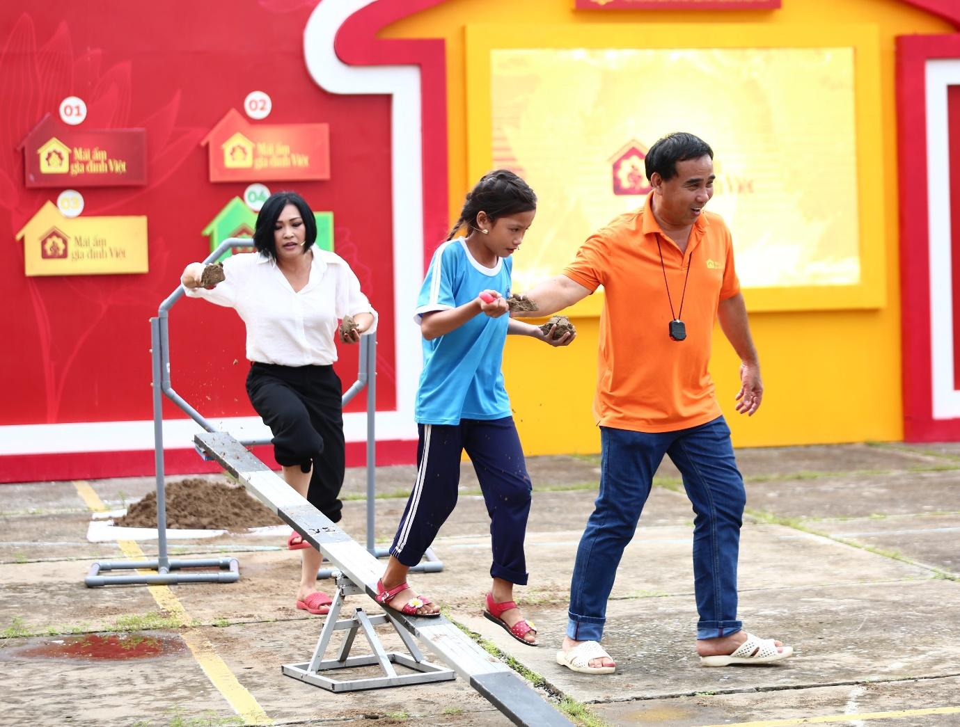 MC Quyền Linh hỗ trợ khách mời giúp các em nhỏ vượt qua những thử thách trong chương trình