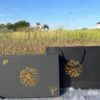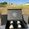 • Hộp quà đen nắp nam châm sang trọng được làm từ chất liệu giấy ép mĩ thuật cao cấp, có họa tiết tinh tế in chìm màu vàng ánh kim với khay nhung đen mềm mịn đựng 4 sản phẩm trà bên trong, kích thước 30x20x7cm.