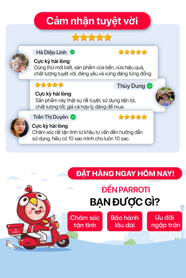 • Parroti đảm bảo sản phẩm đúng như mô tả và hình ảnh