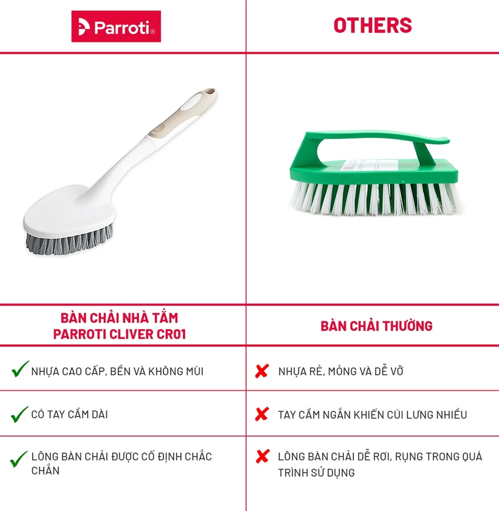 – Kích thước sản phẩm Bàn chải nhà tắm Parroti Clever – CR01: 31cm x 10cm x 9cm